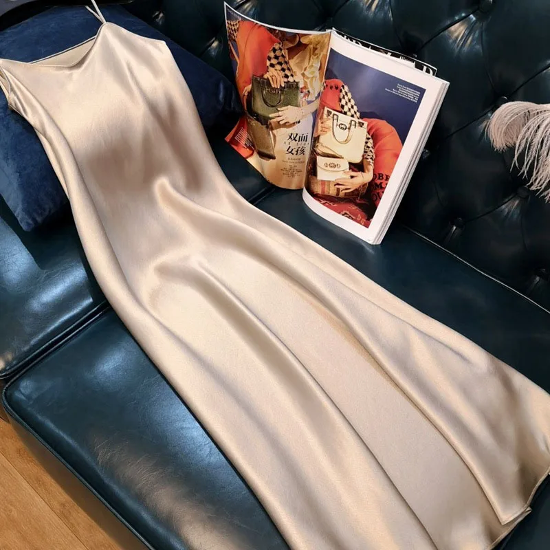 2021 Лето женское длинное атласное платье-комбинация спагетти ремен...