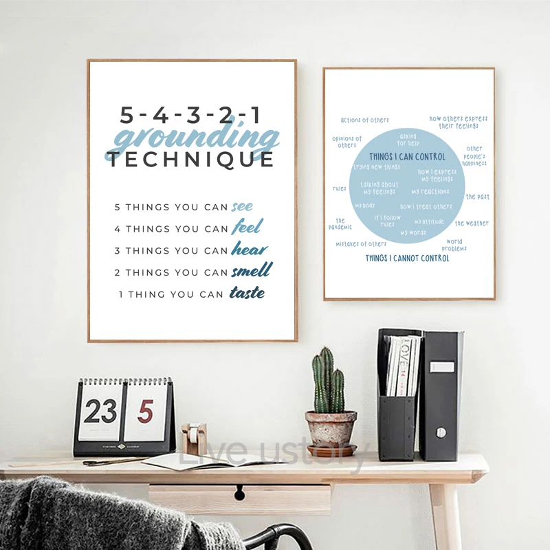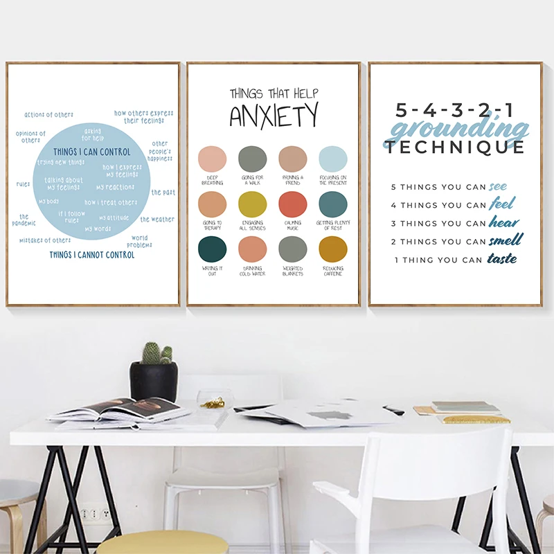 Заземление тревога холст художественные принты дыхание плакат Современная терапия умственного здоровья консультации настенные фотографии терапевта офисный Декор