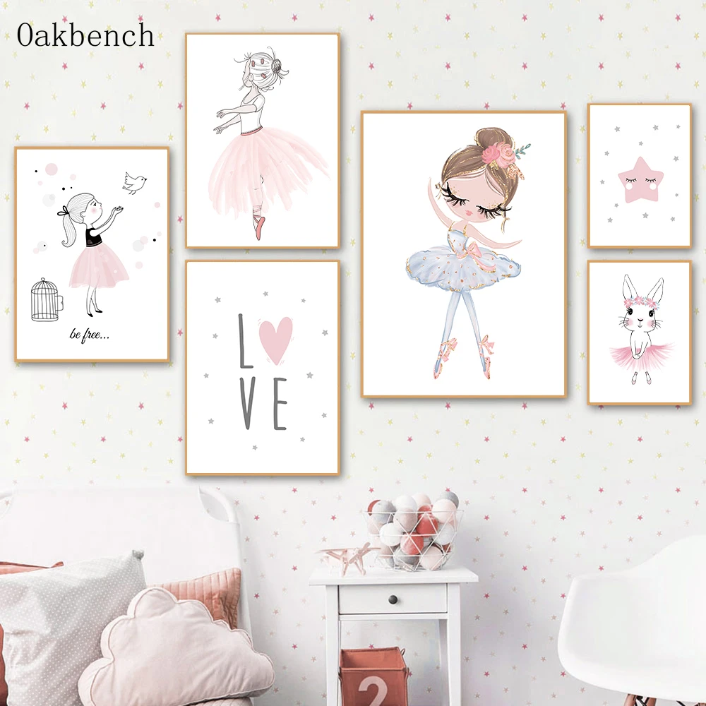 Настенная картина с изображением балерины для детской комнаты, постеры с изображением животных и цветов, картины в скандинавском стиле для маленьких девочек, украшение для комнаты и дома
