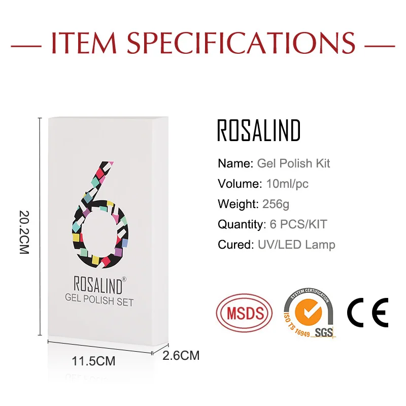 Набор гель-лаков ROSALIND 10 мл набор для маникюра Лак для ногтей Vernis Полупостоянный набор гель-лаков для ногтей основа и верх Название бренда: ROSALIND Материалы: УФ-изгибаемая смола Объем: 10 мл Вес нетто: 37 г Сертификация: MSDS, SGS Инструменты для отверждения: УФ-лампа, светодиодный светильник, УФ/светодиодный CCFL лампа Качество-наш первый приоритет. Гели остаются блестящими до 30 дней. Самые популярные цвета на выбор. Подходит для всех случаев. Три шага для маникюра самостоятельно: 1.-форма поверхности ногтей, очистить кутикулы, для полировки ногтей поверхности и очистить пыль. 2.-Нанесите базовый слой ROSALIND (не забудьте запечатать край ногтя). Вылечите светодиодный светильник в течение 60 секунд или УФ-лампа в течение 2 минут. 3.-нанесите первый слой цвета ROSALIND. Вылечите светодиодный светильник в течение 60 секунд или УФ-лампа в течение 2 минут. 4. Нанесите больше слоя цветного пальто, если цвет недостаточно яркий. 5.-нанесите верхнее пальто ROSALIND. Вылечите светодиодный светильник в течение 60 секунд или УФ-лампа в течение 2 минут. 6.-протрите липкий остаток на ногтях очищающим средством. Два шага для удаления: 1.-Замочите ногти в акриловое средство для удаления около 5 минут. 2.-аккуратно разорвите весь кусок эмали для ногтей на каждый ноготь. Напоминание: 1.-Вес нетто 7 мл. Но емкость бутылки составляет более 7 мл, Гель не будет полностью заполнен в бутылке! 2.-Держите плотно закрытыми, держите подальше от солнечного света, держите в недоступном для детей месте.