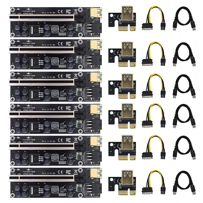 10 шт. Ver009 Usb 3,0 Pci-E Ver 009S плюс Экспресс-1X 4X 8X 16X расширитель Riser карта адаптера Sata (15 контактов-6 контактов) Мощность кабель