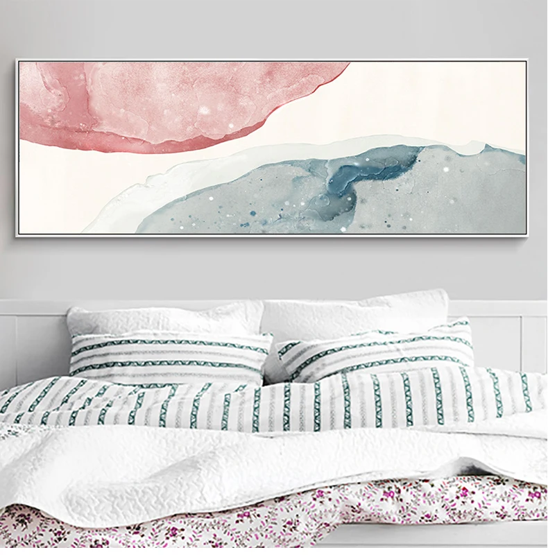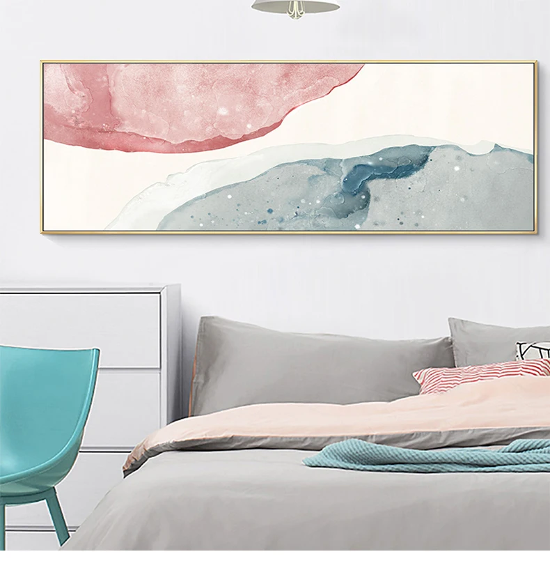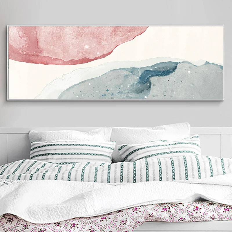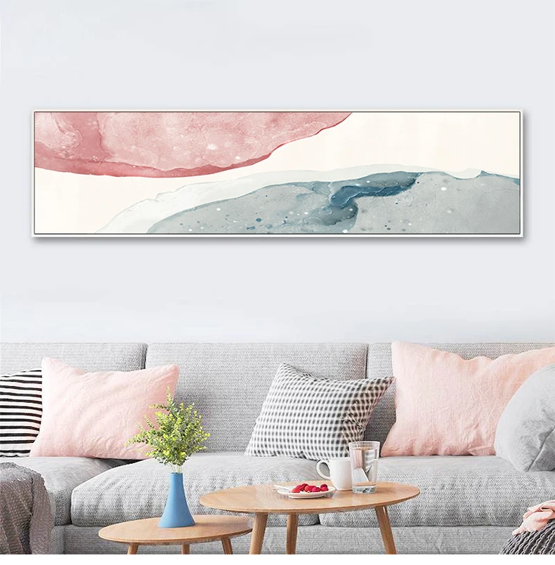 Абстрактный пейзаж, настенная живопись на холсте, розовый небесно-г...