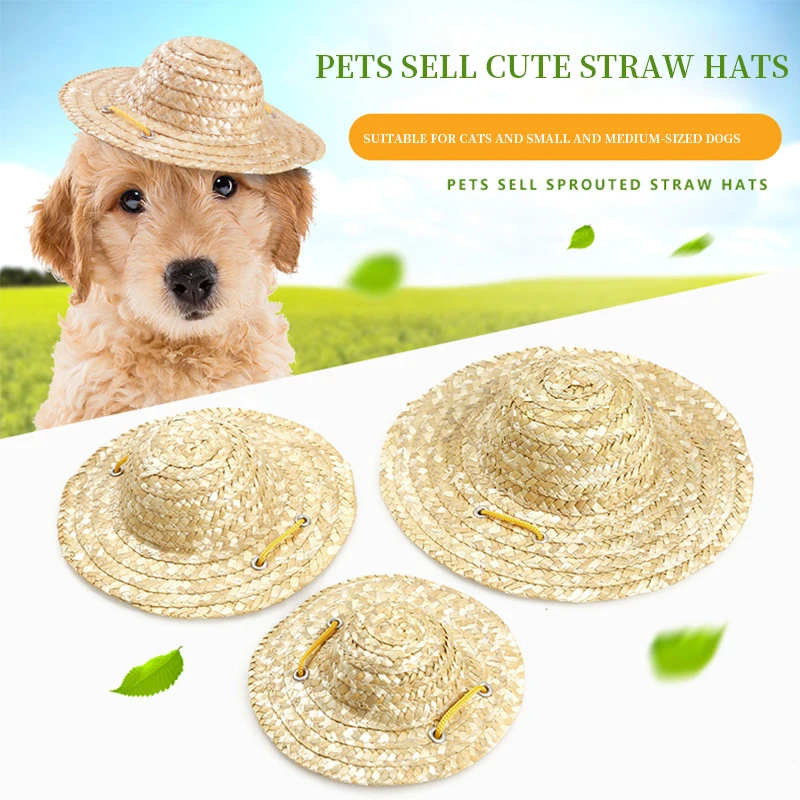 Соломенная шляпа ручной работы для домашних животных, соломенная шл...