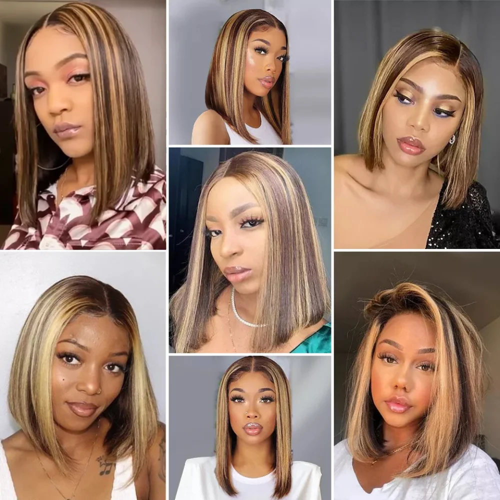 Сапфир 13х1 яркий парик Омбре коричневый медовый блонд короткий боб парик HD кружевная часть парик цветные P427 человеческие волосы парики средняя часть