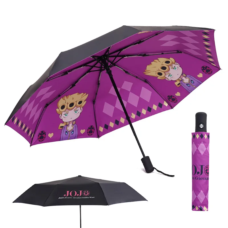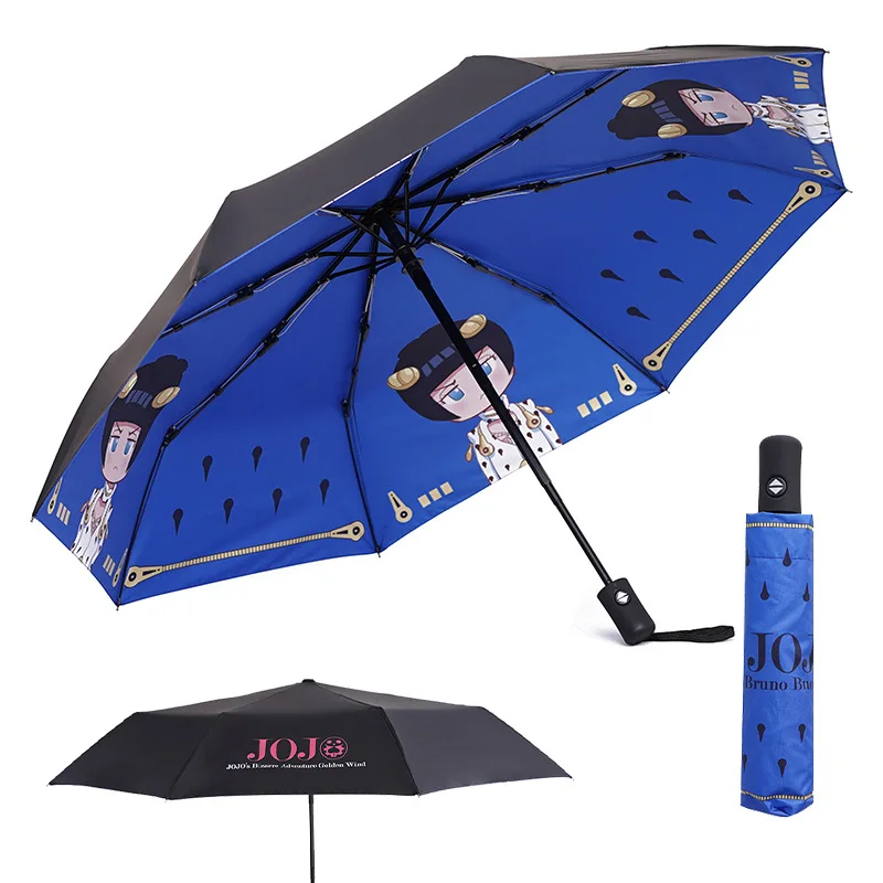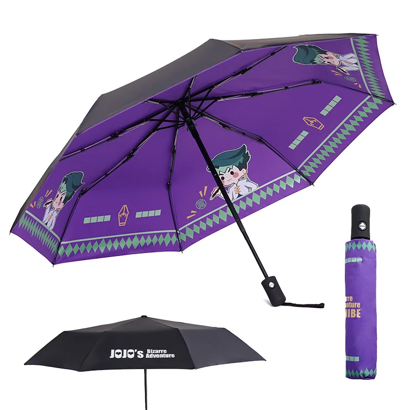 Автоматический складной зонт из аниме Невероятные приключения Джоджо, креативный двухсторонний Зонт с черной клеевой печатью дизайн, складной зонт