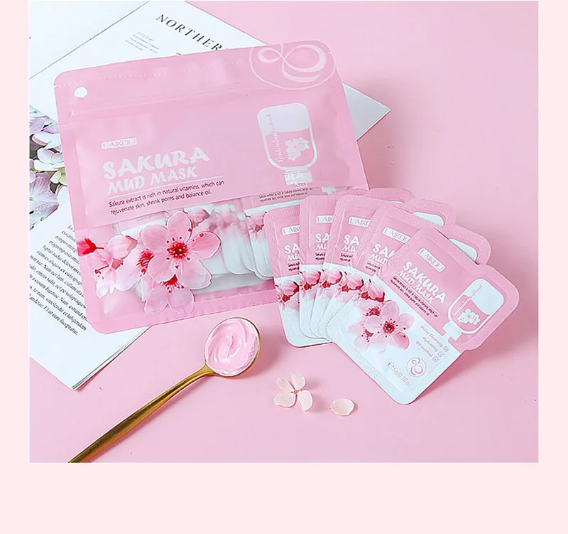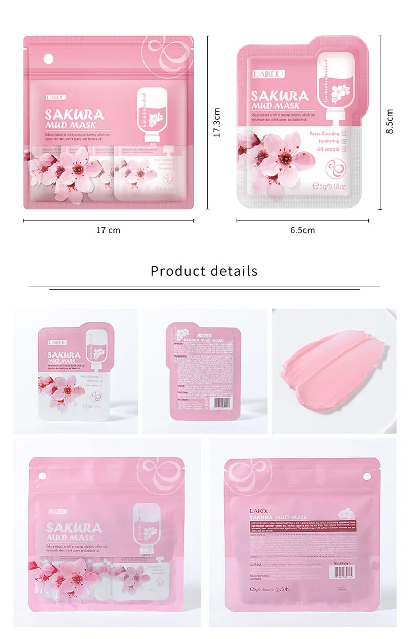 LAIKOU 5 шт Сакура грязевая маска для лица, уменьшает поры, удаляет...