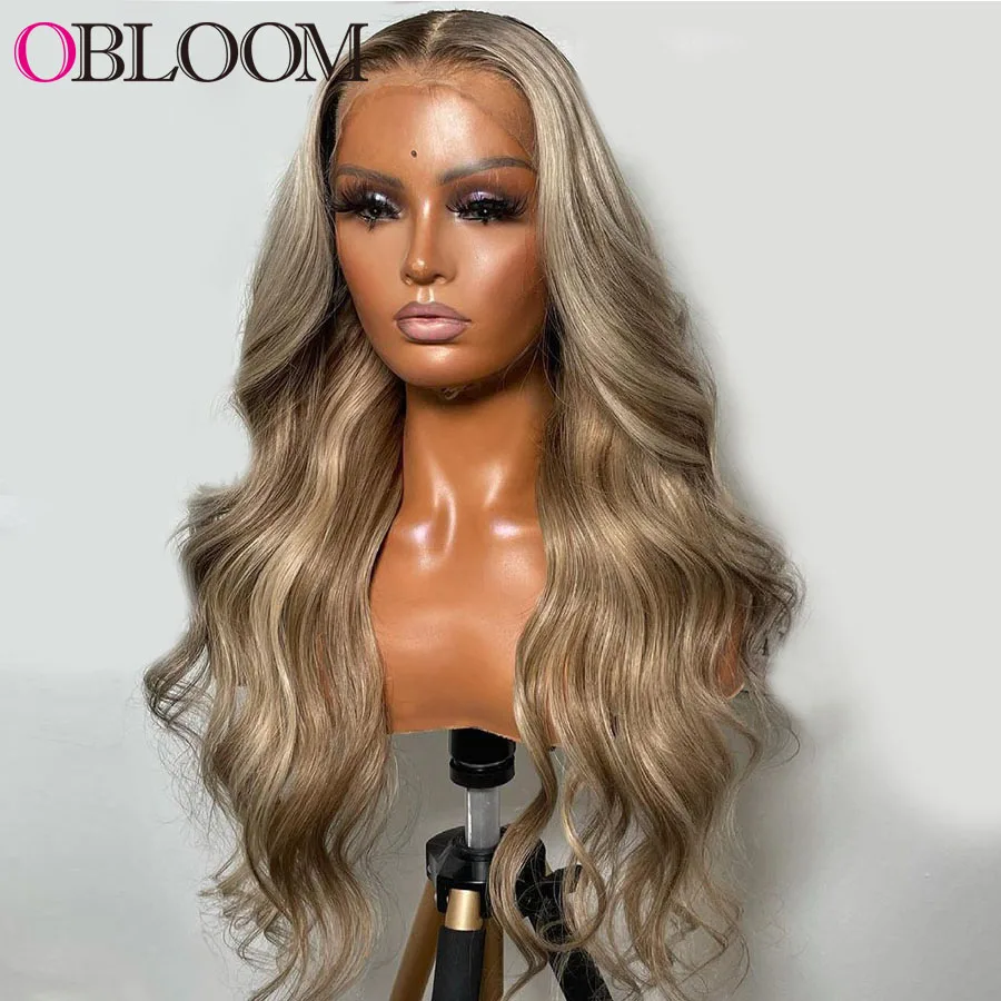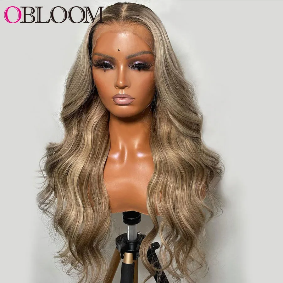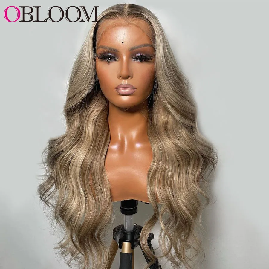 28in Ombre хайлайтер тела волны 13x4 кружевной фронтальный парик че...