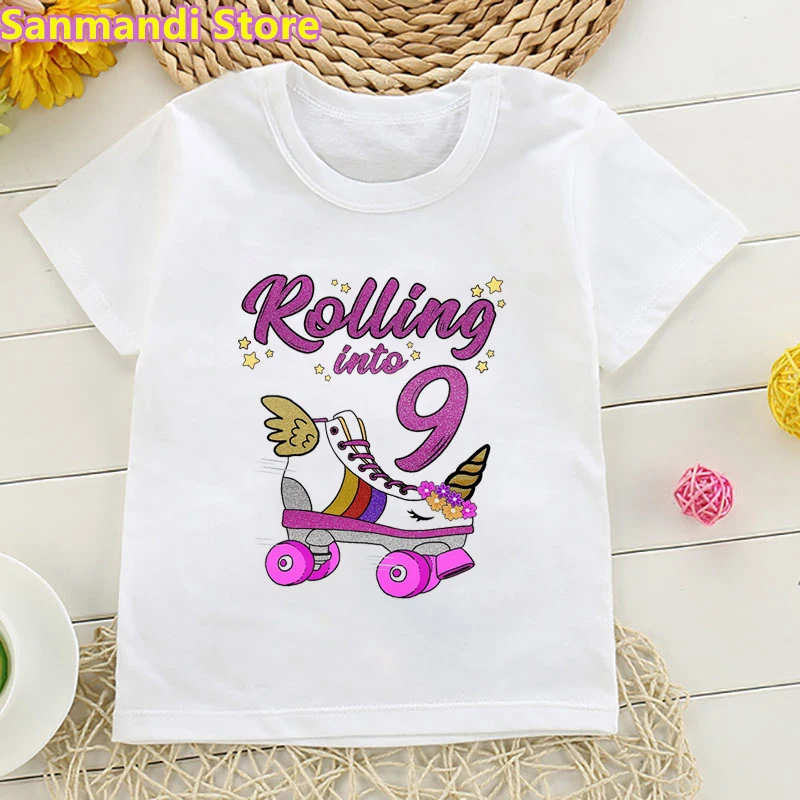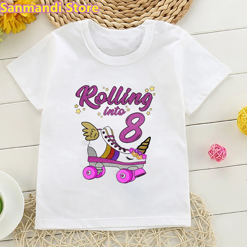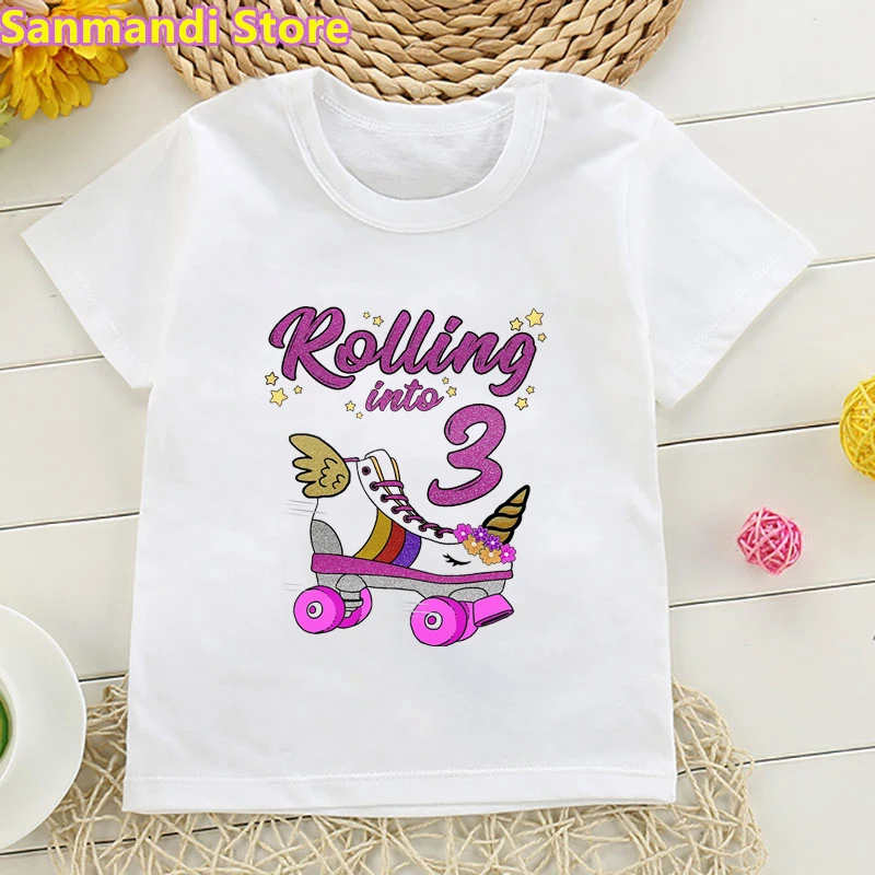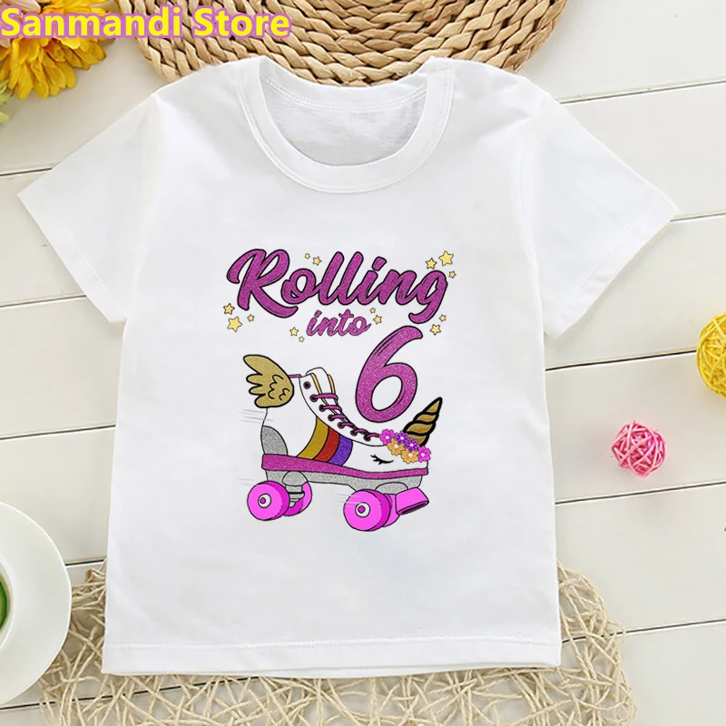 Детская одежда, футболка с графическим принтом единорога, роликовые коньки, для вечевечерние, для девочек, подарок на день рождения, топы для девочек