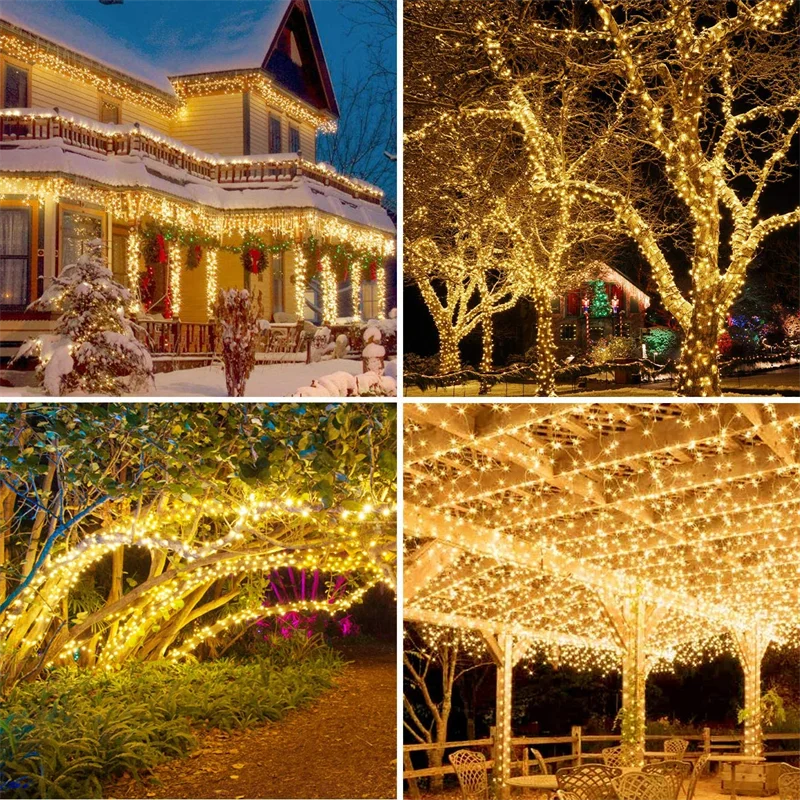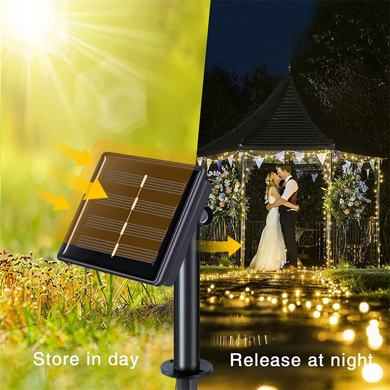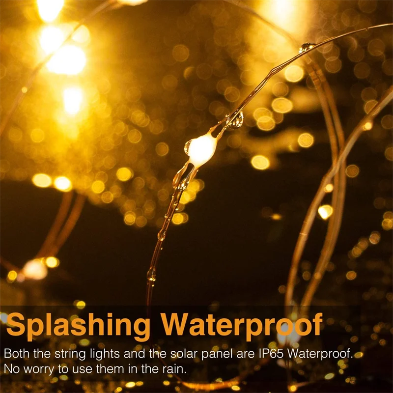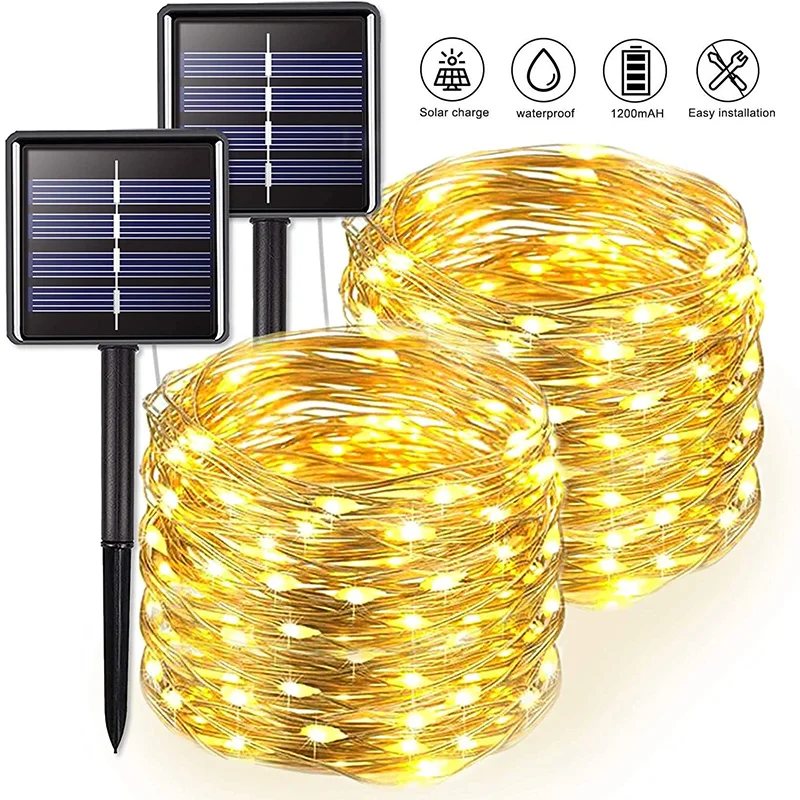 Уличная светодиодная гирлянда на солнечной батарее, 200 светодиодов, 8 режимов освещения, водонепроницаемая декоративная лампа с медным проводом