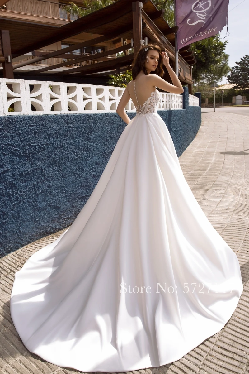 Классическое кружевное пляжное свадебное платье, прозрачное атласное длинное богемное платье с аппликацией на шее, 2021