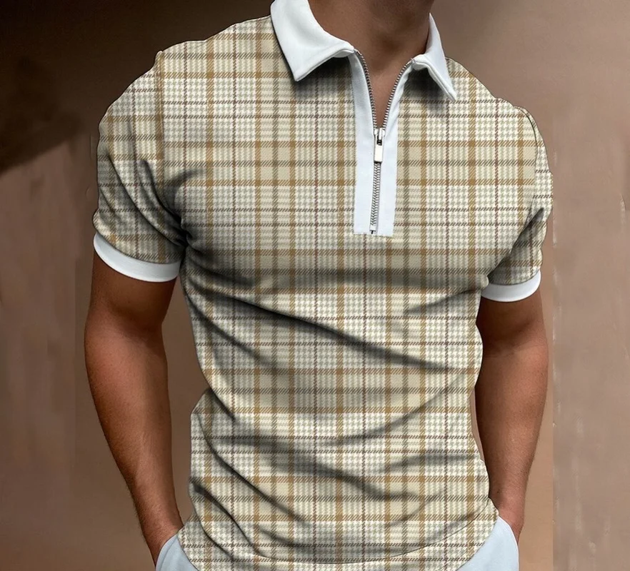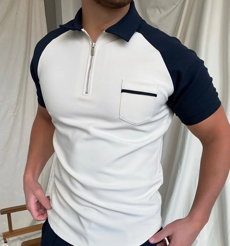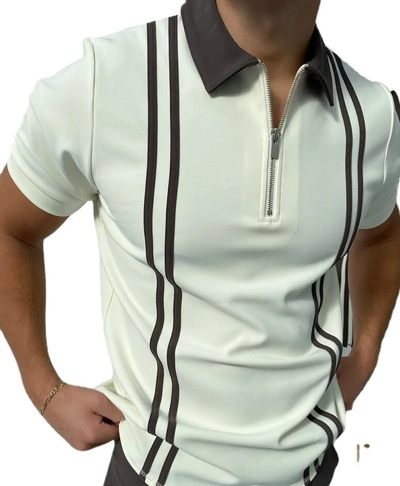 Высококачественная модная мужская футболка с коротким рукавом, полосатые повседневные топы с молнией и воротником-поло, одежда свободного кроя для мужчин, одежда большого размера