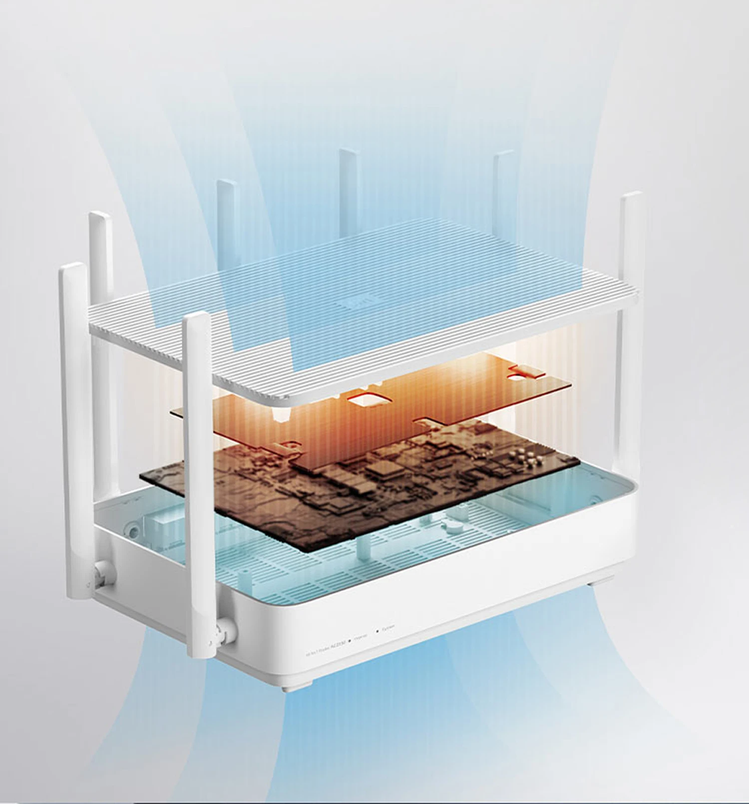 Теплоотвод из широкого алюминиевого сплава и теплопроводная паста эффективно повышают эффективность тепловыделения. Вентиляционные отверстия на верхней и нижней крышках обеспечивают хорошую циркуляцию воздуха, обеспечивая долгосрочную надежную работу маршрутизатора.