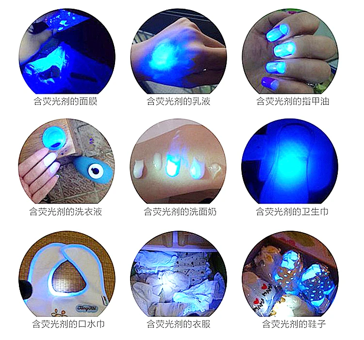 Вообще говоря, это легче идентифицировать флюоресцентных веществ в объекте при использовании светильник флэш-светильник, в то время как флюоресцентных веществ не так сильно при использовании темно флэш-светильник.