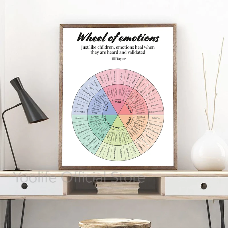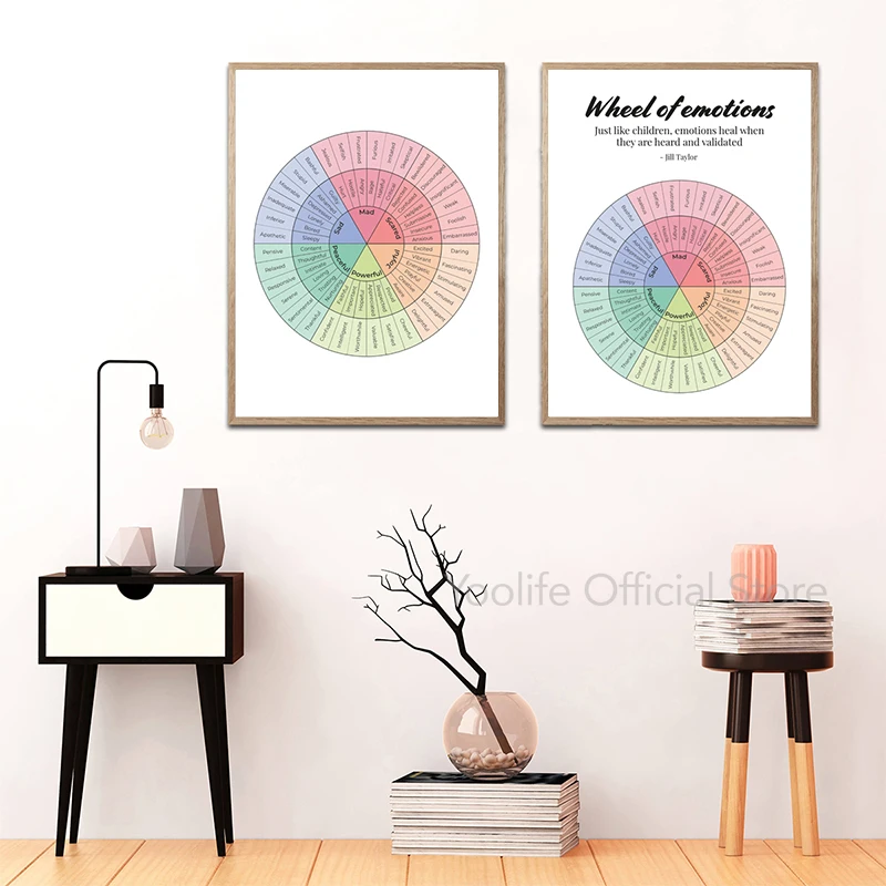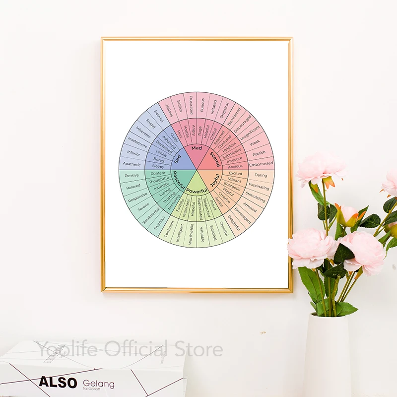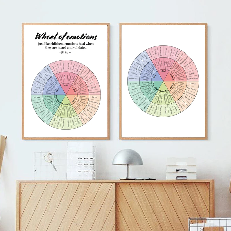 Эмоции колесо терапия плакаты эмоции цитаты Холст Искусство Печать умственное здоровье живопись настенные картины лечение декор комнаты