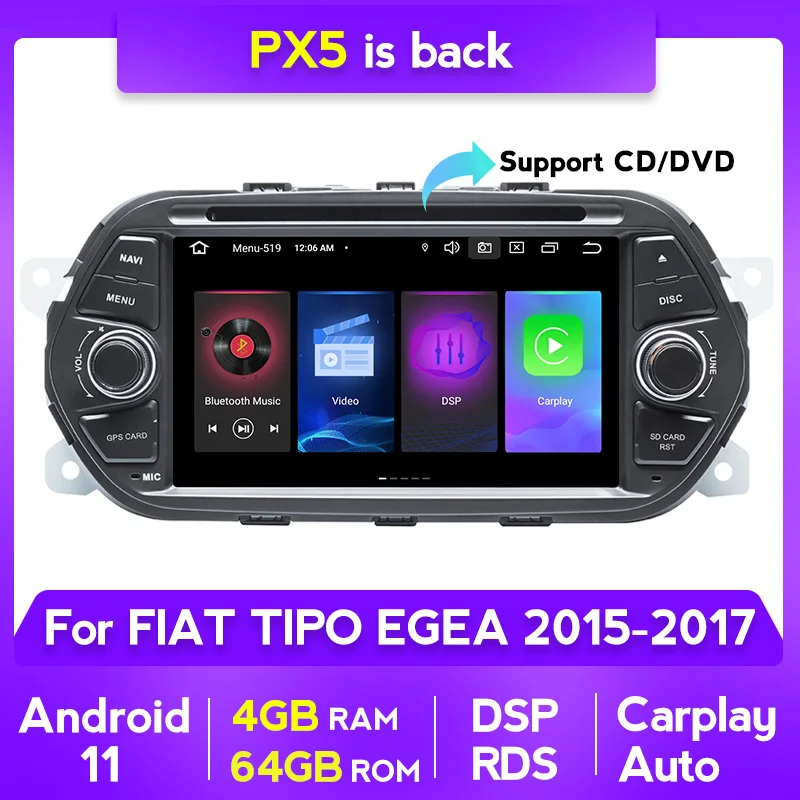Автомобильный DVD-проигрыватель DSP RDS 4 + 64G Android11, GPS для Fiat Tipo Aegea Egea 2015, 2016, 2017, для Jeep Neon, радио, стерео, Carplay + авто, Wi-Fi, BT