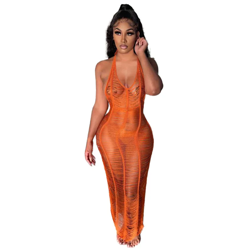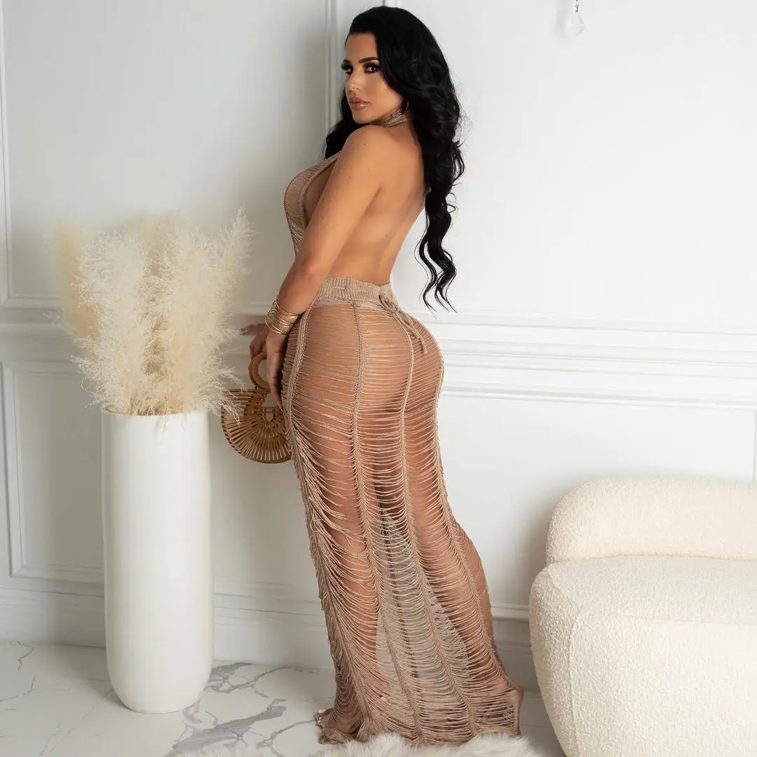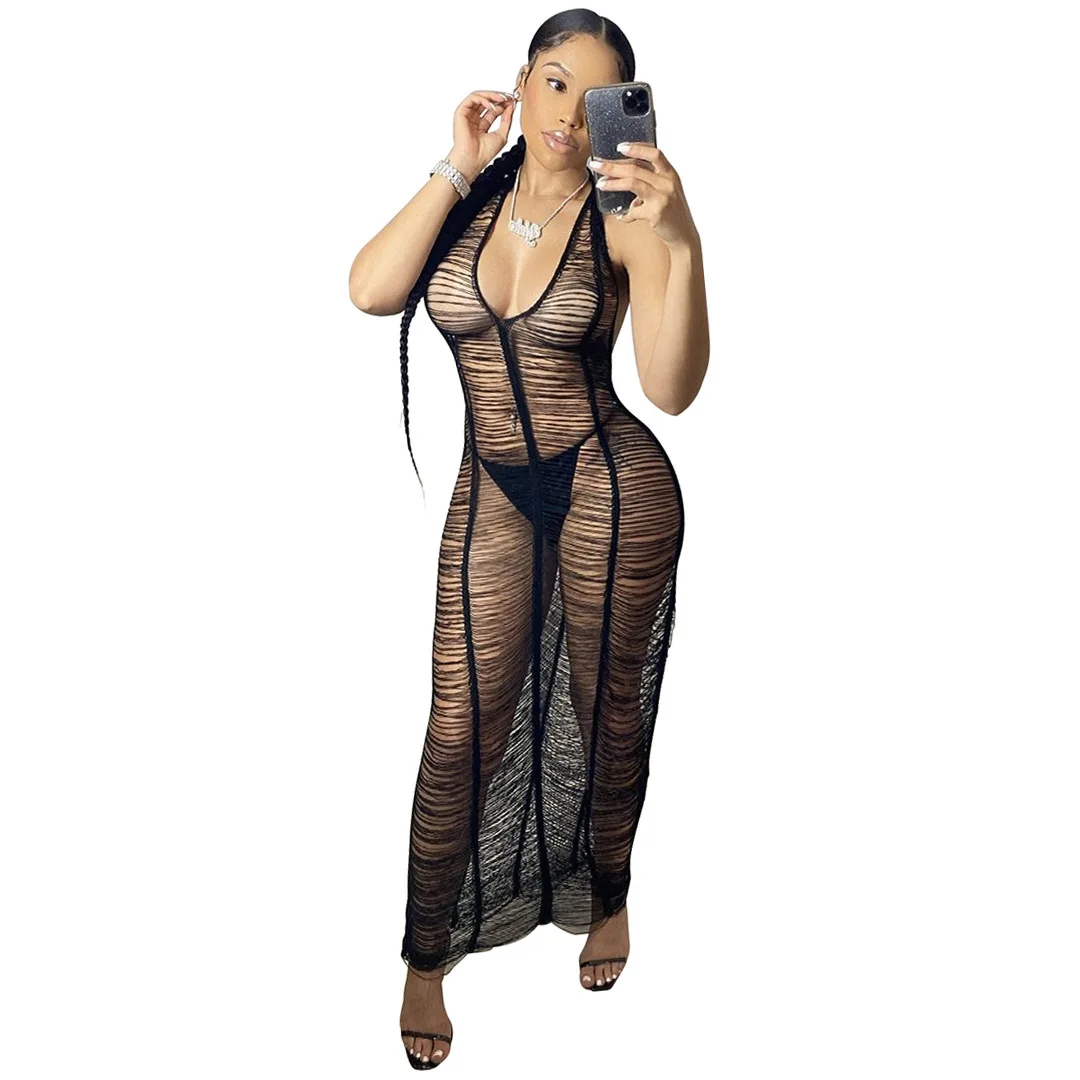 Женское Сетчатое платье S-XL с длинным рукавом, сексуальное прозрачное облегающее длинное платье с бахромой