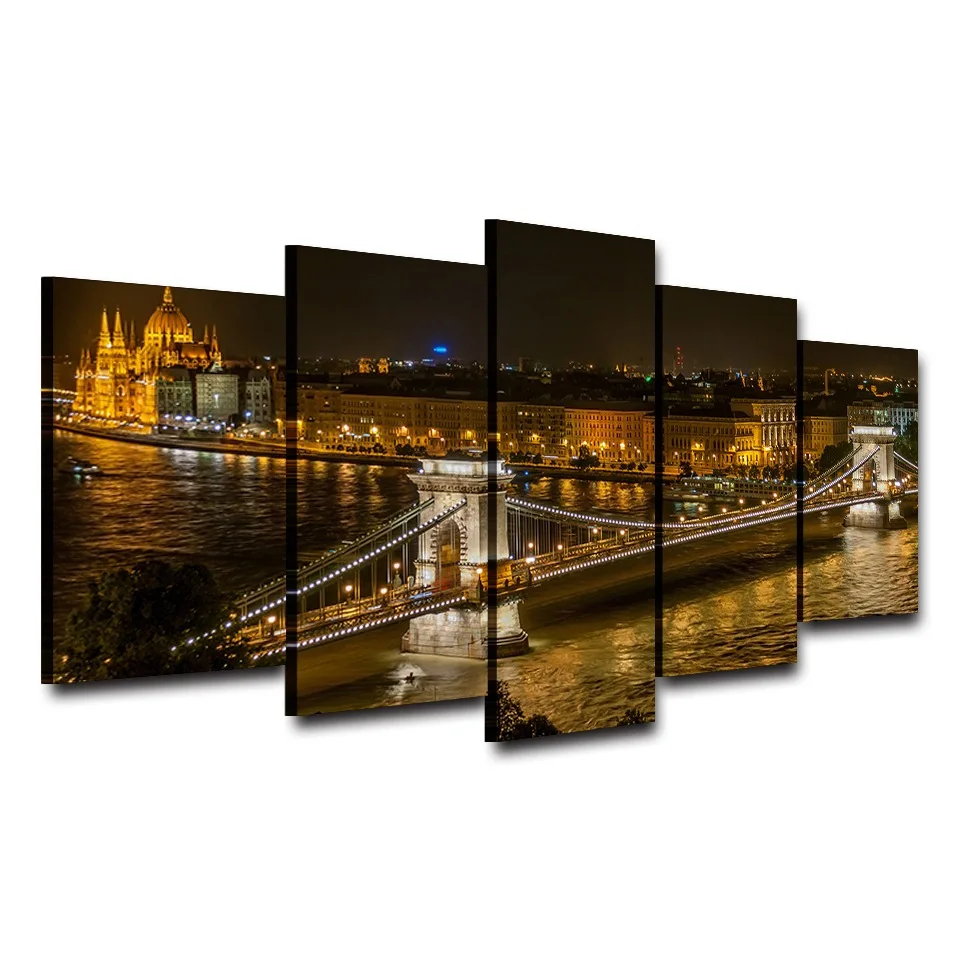 5 шт., винтажные модульные картины с изображением моста ночного видения, постер, HD печать, картина маслом, настенное искусство, холст, домашний декор, украшение гостиной