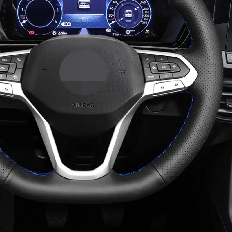 Рука сшитый черный натуральная кожа чехол рулевого колеса автомобиля для Volkswagen VW Golf 8 2020 Atlas 2020-2021