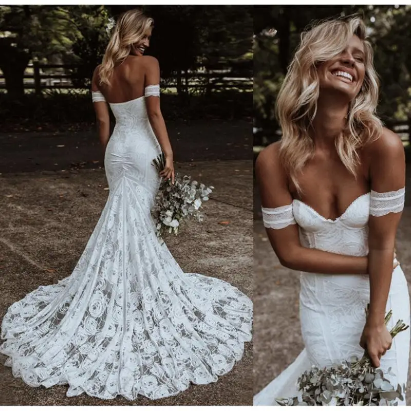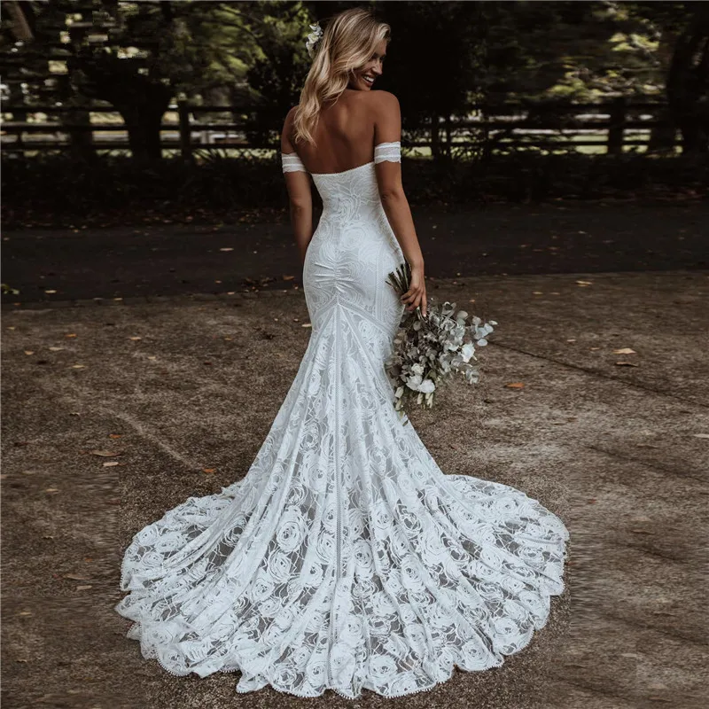 Кружевное свадебное платье в стиле бохо для женщин, свадебные платья с открытыми плечами ручной работы, 2022 г. icon star icon star icon star icon star icon star
