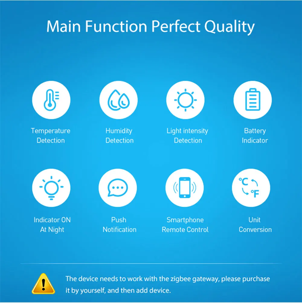 Этот продукт должен быть использован с шлюзом ZigBee3.0, который не включен в продукт!1. Умный термометр с яркостью определяет изменения в окружающем светильник, температуру и влажность в режиме реального времени; Активно сообщайте пользователю конец через приложение smart Life в качестве встроенного протокола ZigBee. Действительно хорошее дополнение для здоровья тела с детектором в реальном времени домашней яркости, температуры и влажности с высокой точностью.2. Четкое отображение кривой изменения данных как день, месяц и год яркости, температуры и влажности в приложении помогает контролировать состояние дома в нескольких целях, как контроль нагрева, увлажнитель и освещение вкл/выкл в заданное время для всего домашнего интеллекта с бесконечным чувством мудрости.3. Дистанционное наблюдение за освещением комнаты в приложении для высокой эффективности обучения детей во время выполнения домашней работы с Умной связью сцены с домашним смарт-переключателем, чтобы автоматически включить светильник, когда солнце садится или возвращается из всего-рабочий день без ручного включения светильник или запуска переключателя в приложении каждый день для дополнительного удобства.4. Чрезвычайно мощное устройство с мини-дизайном для трех функций все в одном, экономя деньги и энергию без необходимости покупать три различных устройства для самостоятельного использования, хорошо подходит для умного современного образа жизни с простыми операциями.5. Шлюз ZigBee является обязательным для этого датчика температуры и влажности ZigBee, который намного стабильнее, чем маршрутизатор WiFi и является центром управления для умных домов, играя незаменимую роль для всех продуктов ZigBee, вместе со всей умной связью вашего дома.