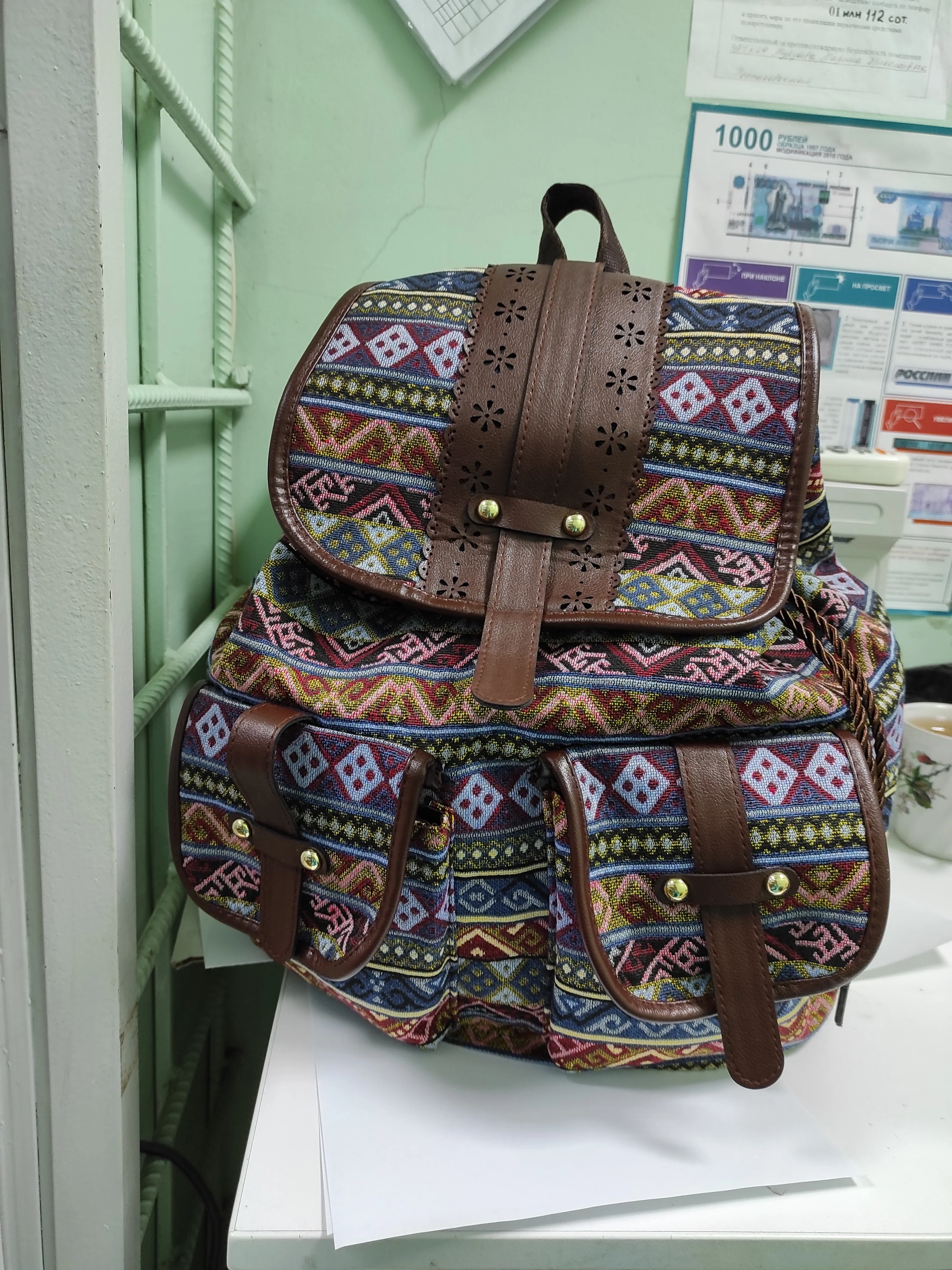 отличный рюкзак, ткань плотная, похожа на гобелен-какой я и хотела, вместительный, лёгкий, яркий, одним словом-мечта!