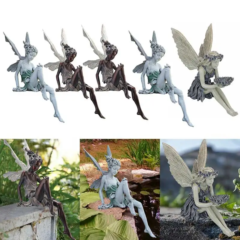 Цветочная сказочная скульптура для сада, ландшафтный двор, художественное украшение, смола, садовая Статуэтка Turek, наружные статуэтки ангела для девочек, ремесло