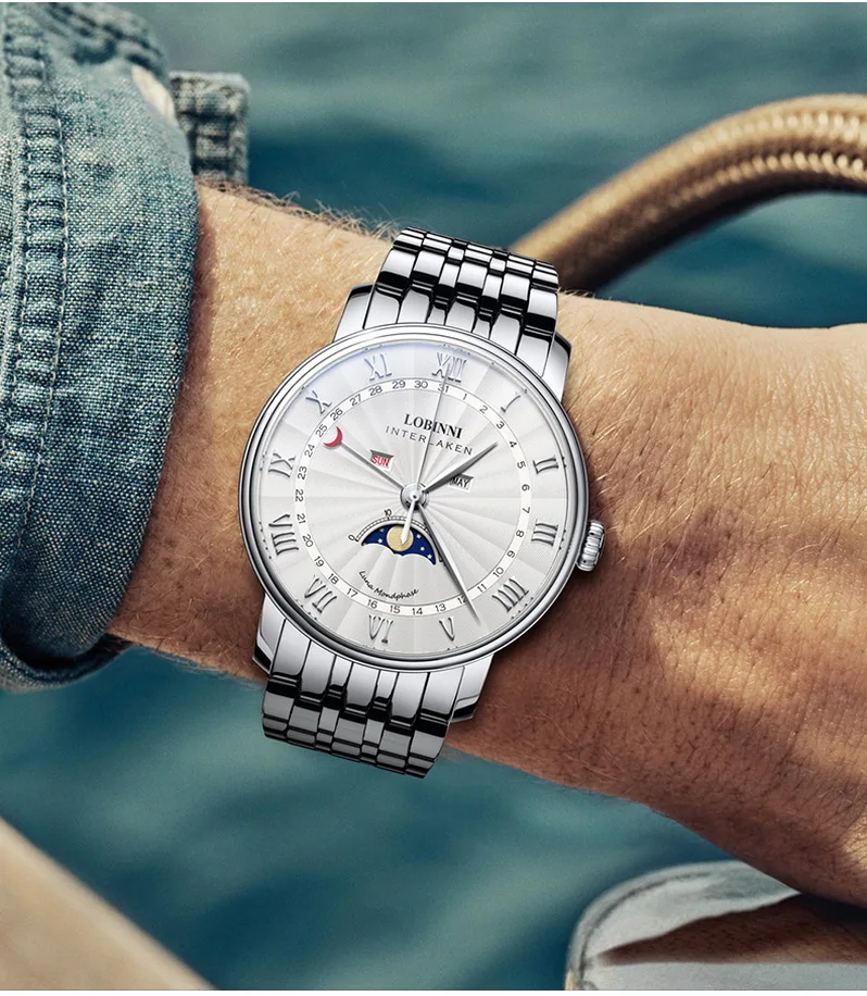 Часы Lobinni мужские деловые, швейцарские роскошные брендовые наруч...