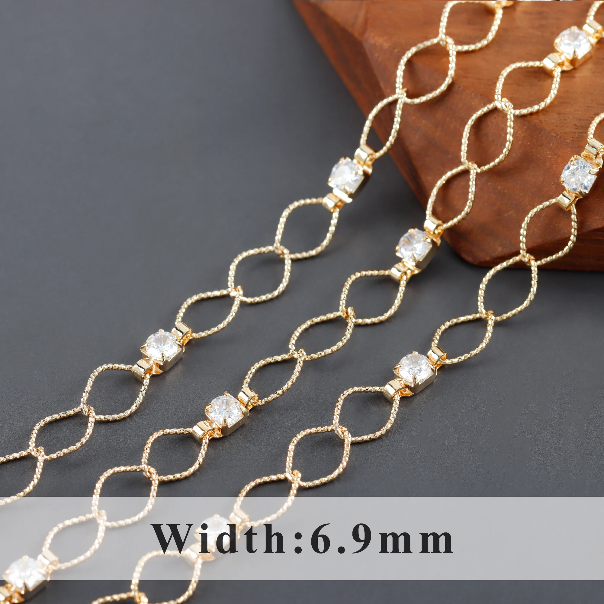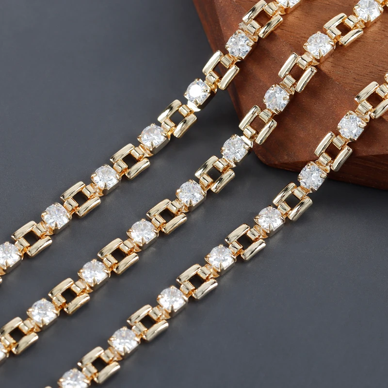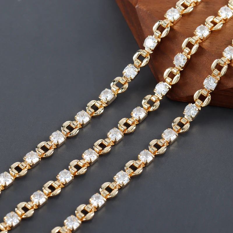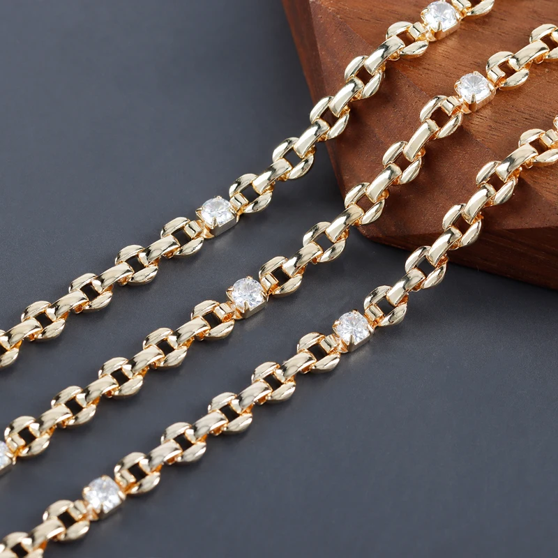 Цепочка YEGUI C216 для самостоятельной сборки, позолота 18 карат, медный металл, родиевое покрытие, циркон, шармы, diy браслет ожерелье, изготовление ювелирных изделий, 1 млот