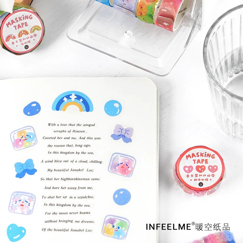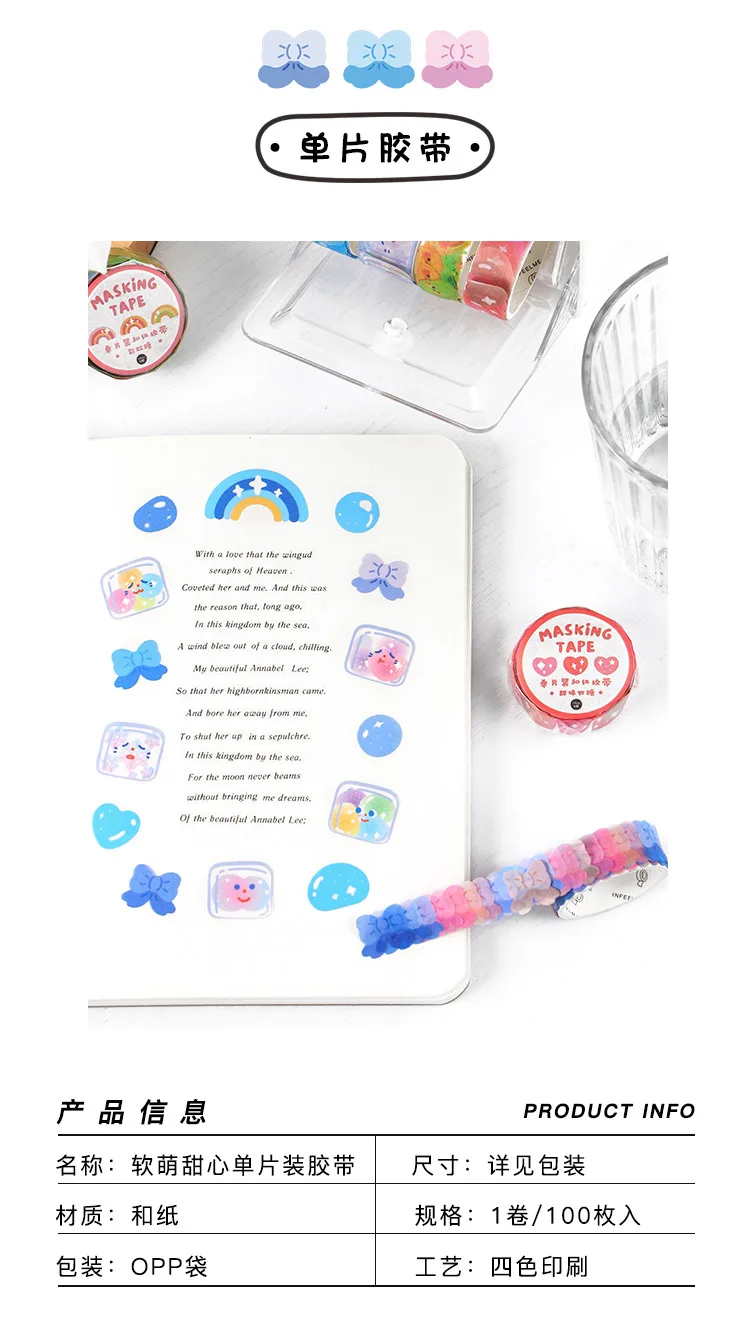 100 шт.рулон, декоративная лента в горошек, радуга, фрукты, банты, цвета, Васи-лента, конфеты, точечная Васи-лента, круглые наклейки для изготовления открыток, скрапбукинга