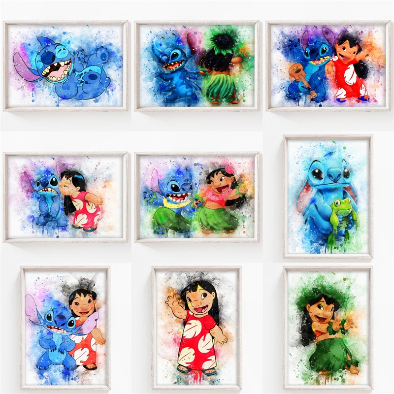 Disney Лило и Стич на холсте Картины мультфильмы Акварель печати плакатов настенные картины для детской комнаты украшение дома