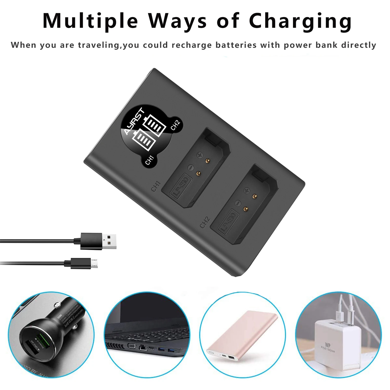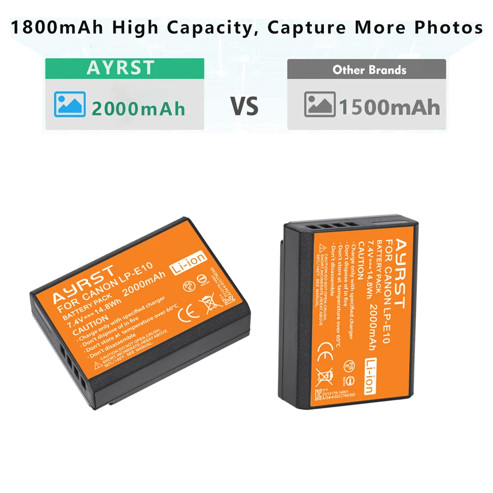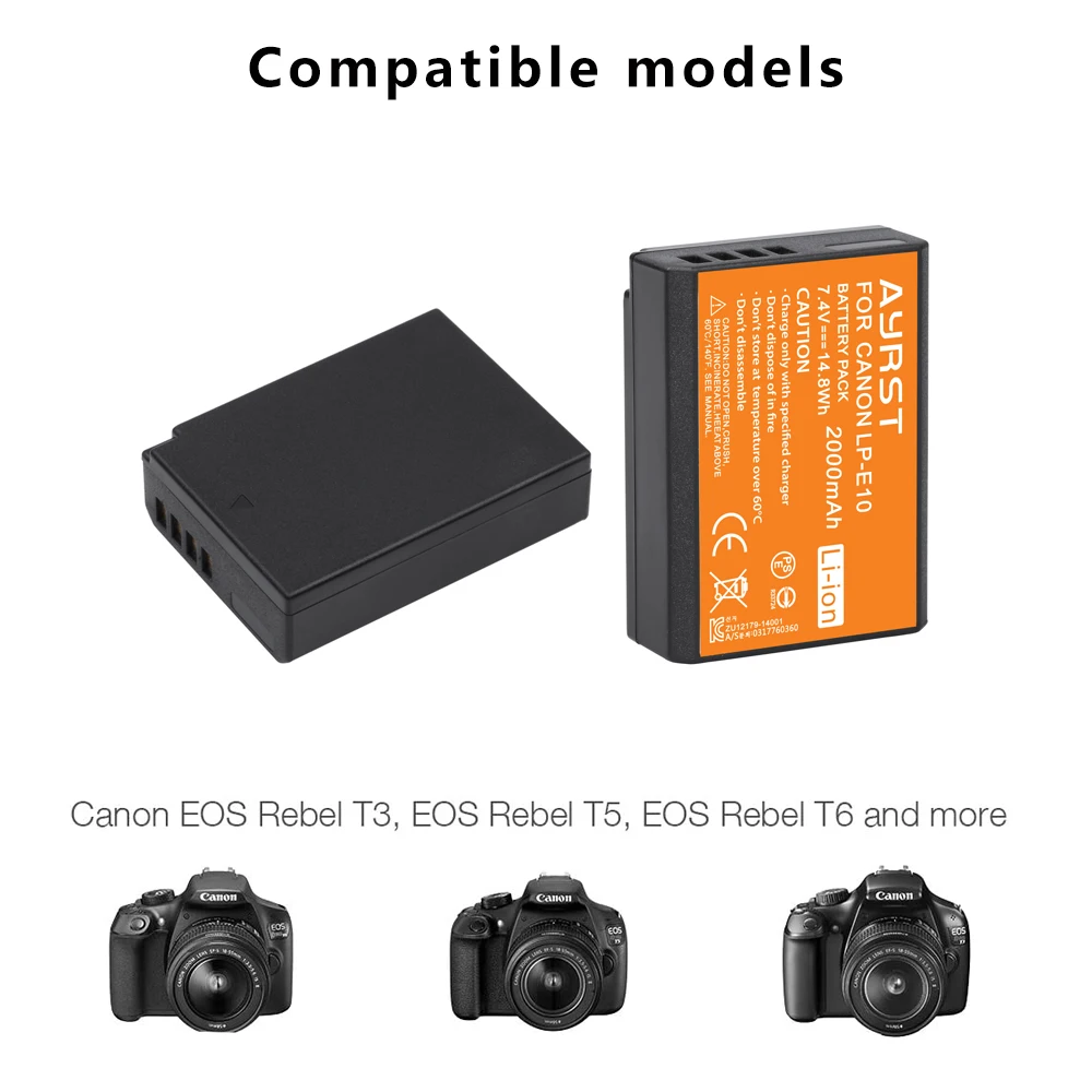Аккумулятор и зарядное устройство 4x2000 мАч для Canon EOS 1100D 1200D 1300D Kiss X50 X70 X80 Rebel T3