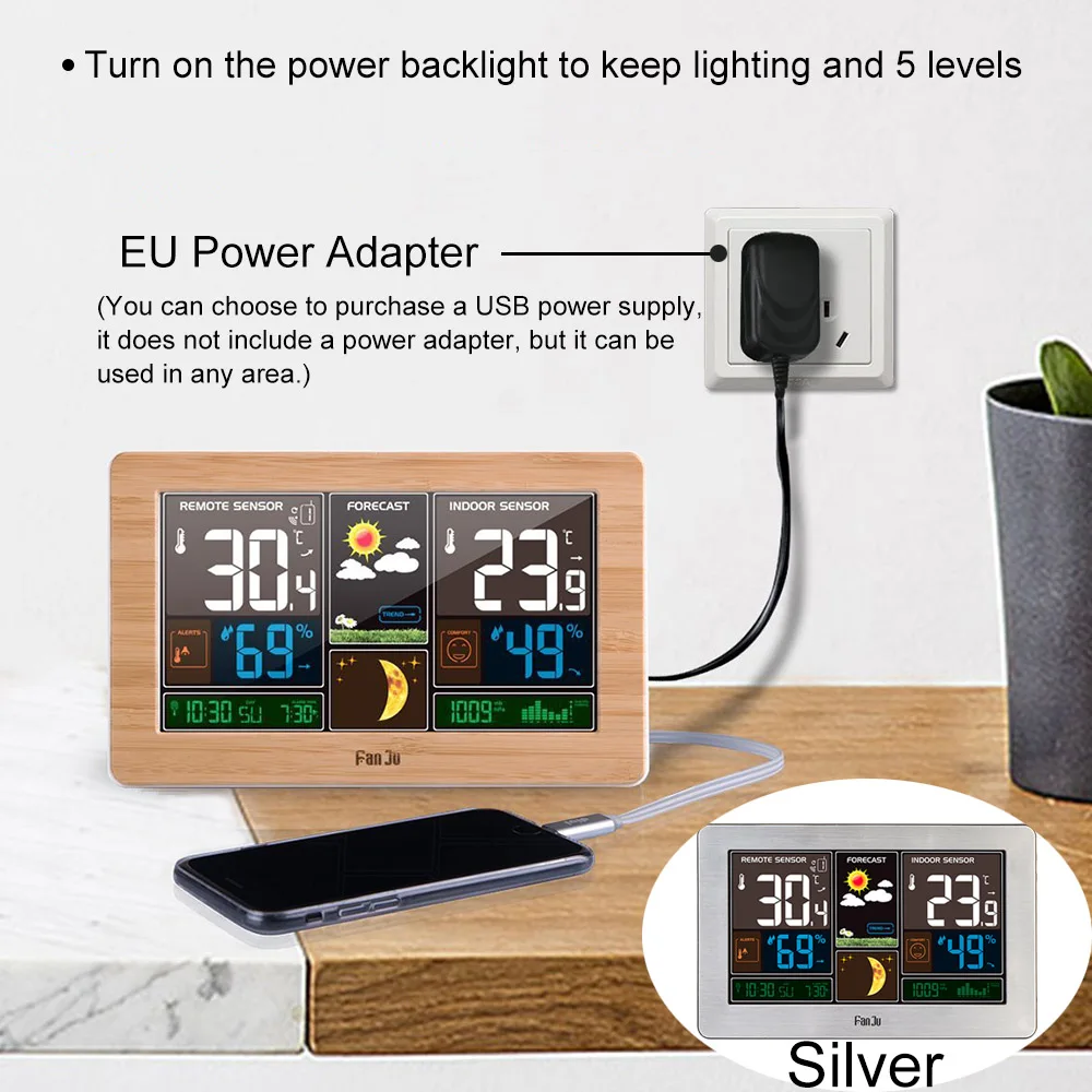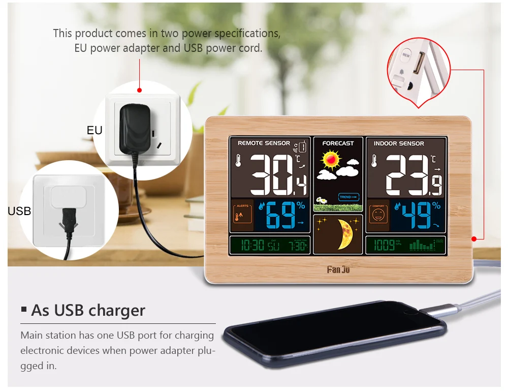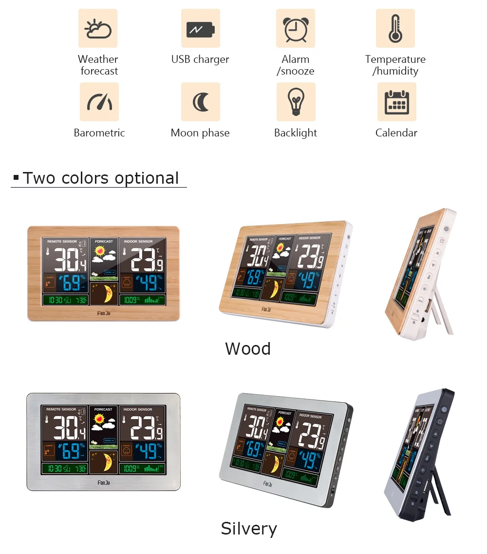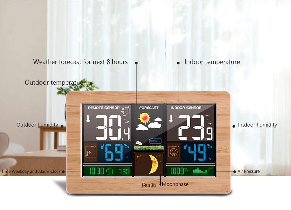 FanJu FJ3378 метеостанция, настенные часы, цифровой будильник, настольные часы, термометр, гигрометр, барометр с беспроводным датчиком