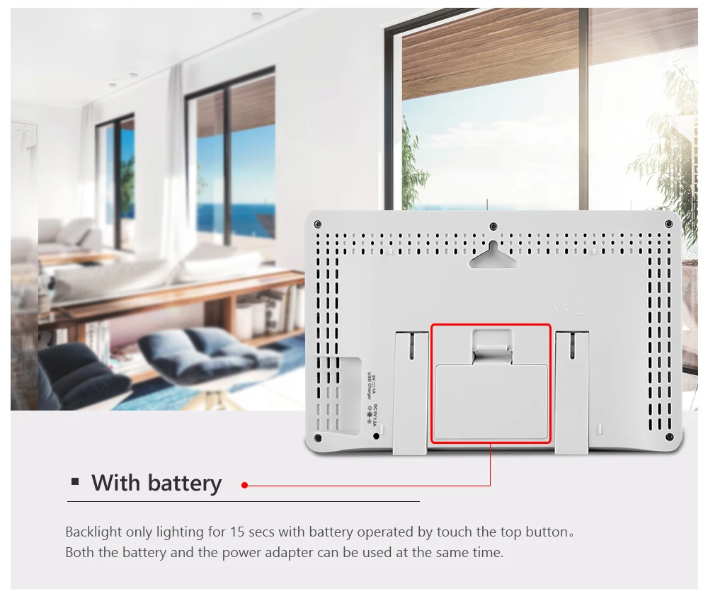 2. Подсветка сохраняет освещение только с помощью адаптера питания. Если Погодная станция работает только с батареей, задний светильник будет работать в течение 15 секунд, нажмите кнопку «светильник», это может немного трудно увидеть дисплей без задний светильник.