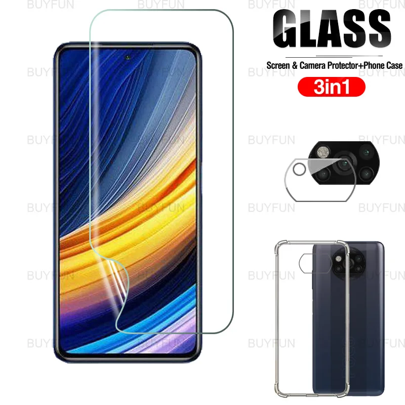 Для Xiaomi Poco X3 Pro 6,67 дюймов 3в1 противоударный силиконовый чехол для xiaomi poco F3 M3 X3 Pro HD Передняя Гидрогелевая пленка стекло для камеры