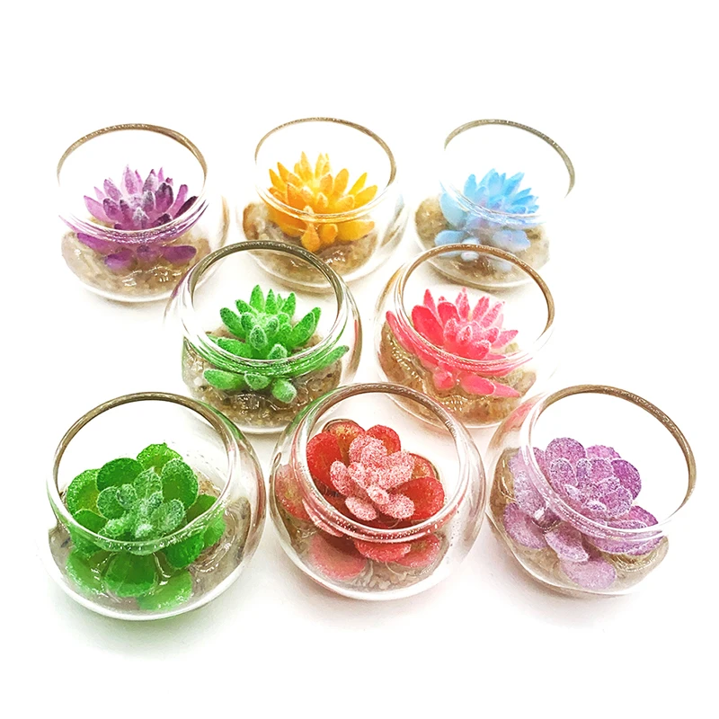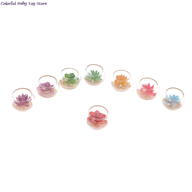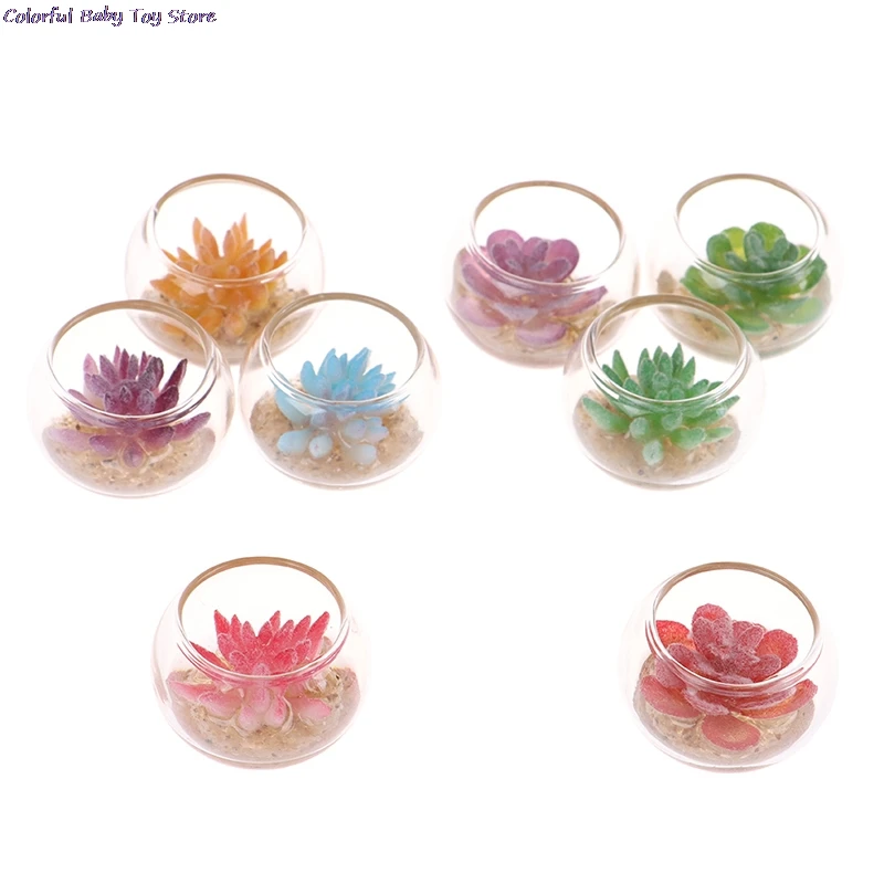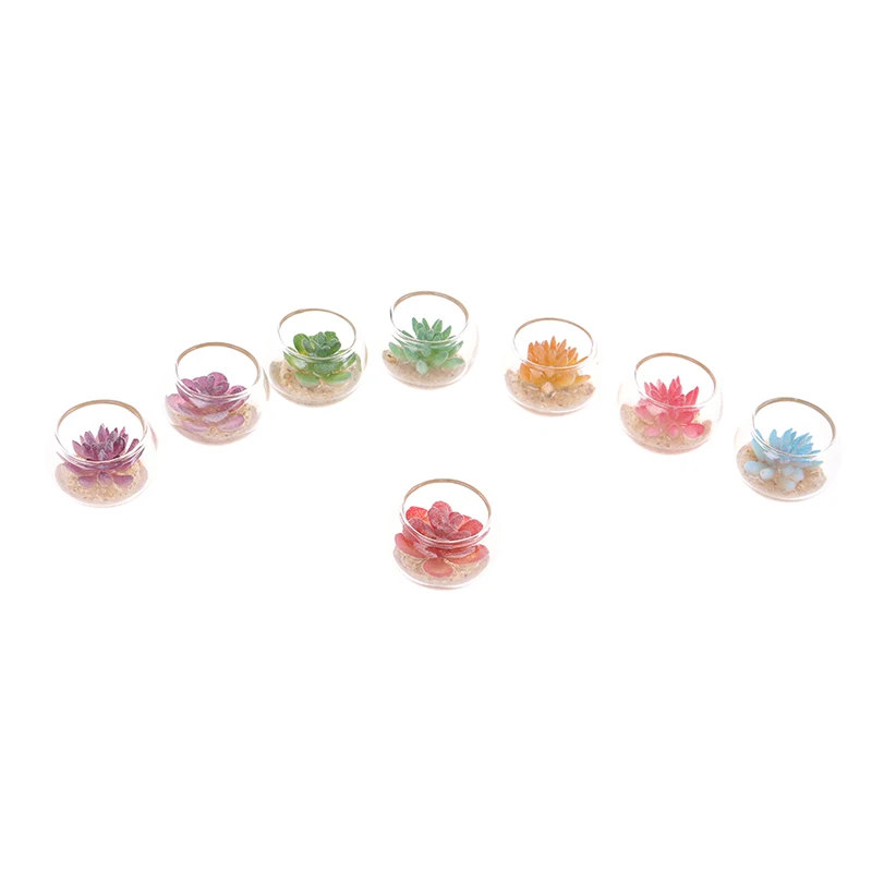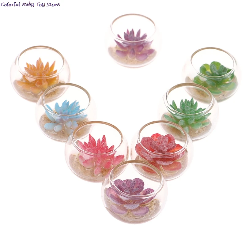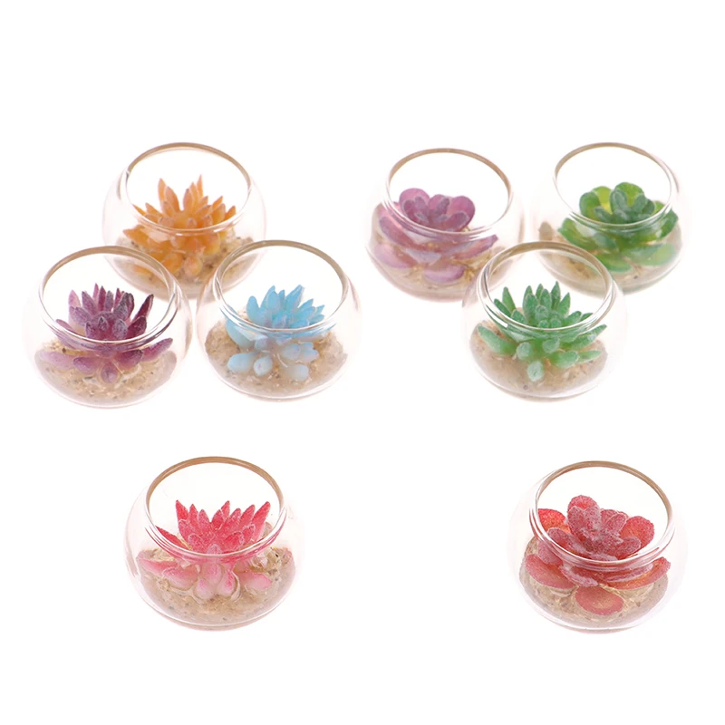 Миниатюрная стеклянная банка для кукольного домика 1:12, растения-суккуленты в горшке, игрушки, домашний декор, 26 мм х 18 мм