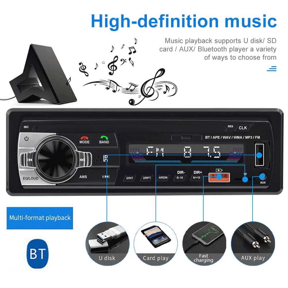 Автомобильный стереопроигрыватель Podofo, цифровой MP3-плеер с Bluetooth, 60 Вт x 4, FM-радио, стерео аудио, музыка USBSD с входом AUX в тире