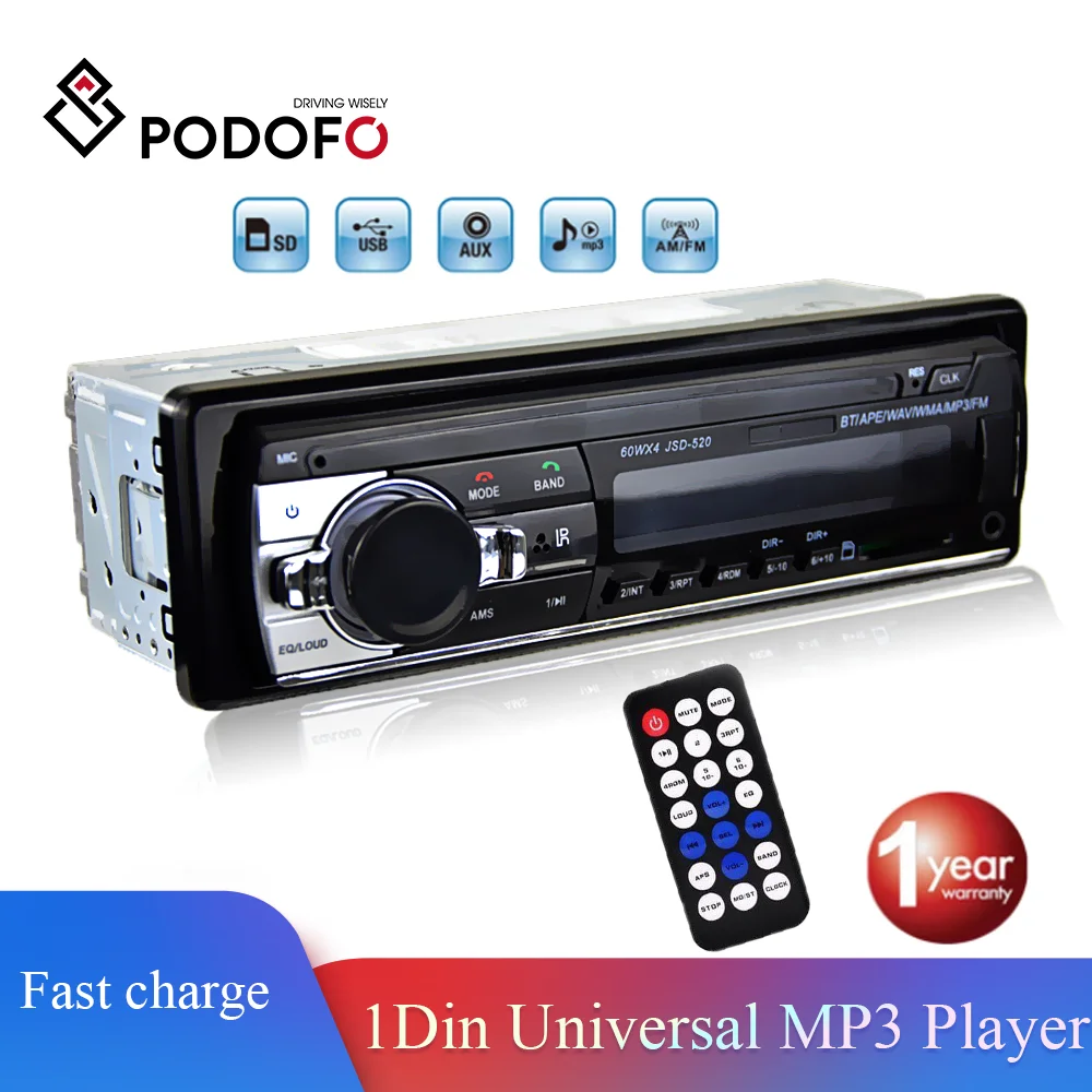 Podofo Авторадио 1 Din автомагнитола стерео Bluetooth FM Aux вход приемник SD USB JSD-520 12V In-dash 1 din аудио MP3 мультимедийный плеер Автоэлектроника сабвуфер