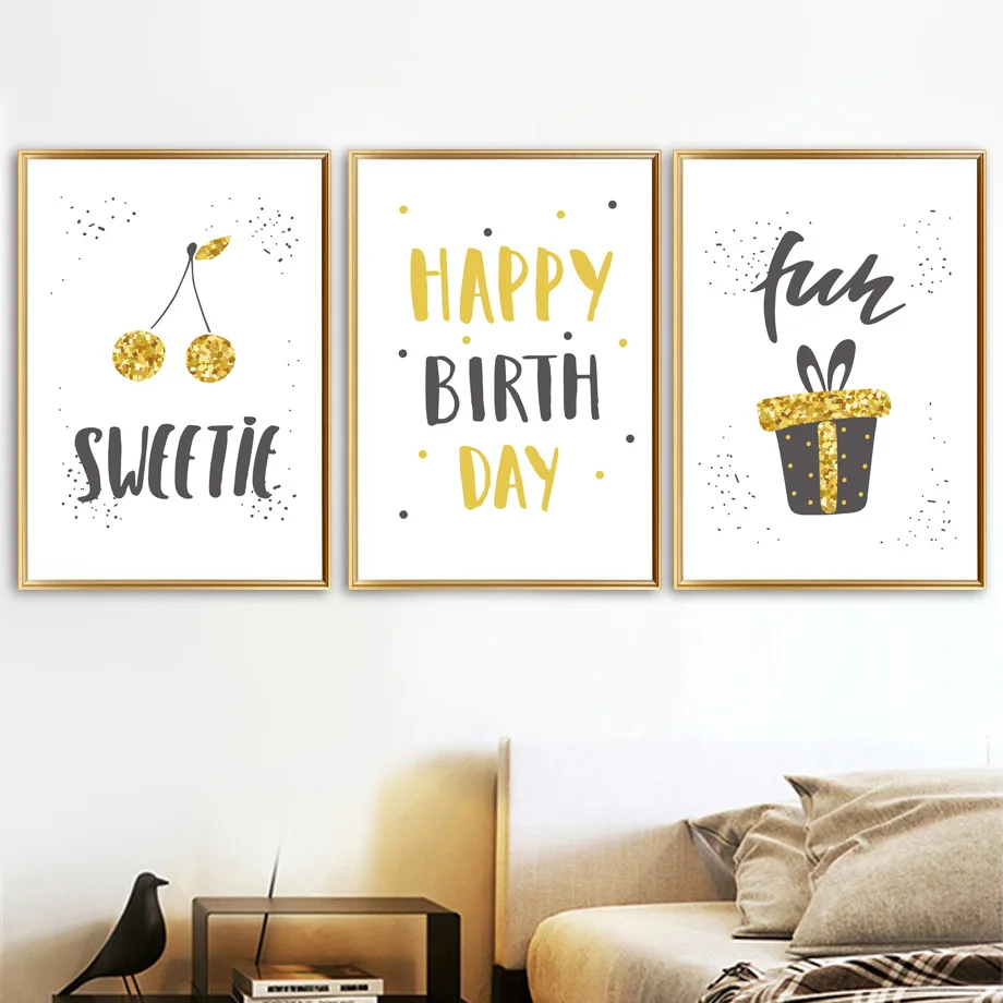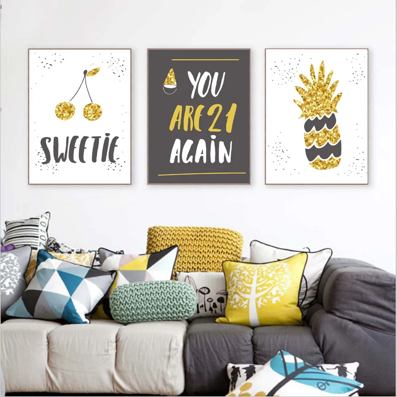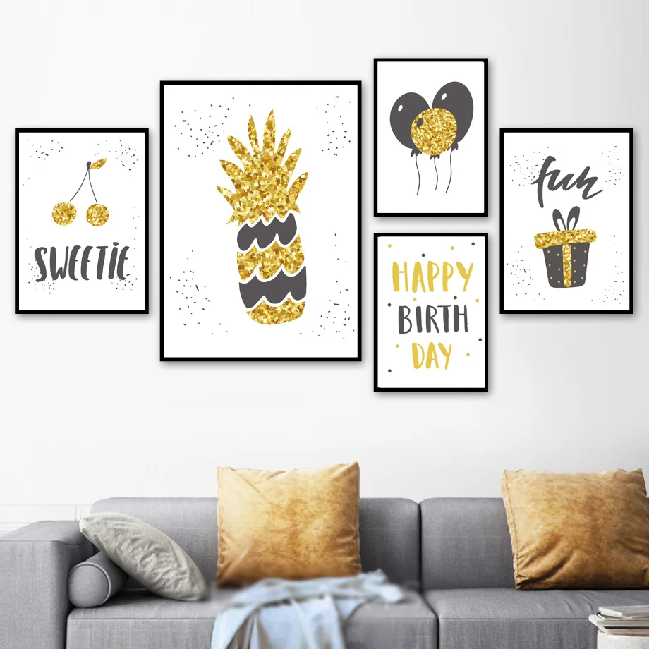 Ананас черешня воздушный шар День рождения скандинавские плакаты и принты настенная Картина на холсте Мультяшные настенные картины украшение детской комнаты