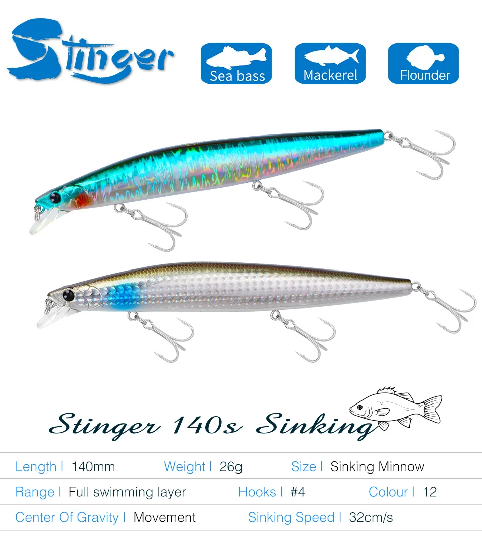 TypeLong Casting Sinking Minnow Fishing Lure 140S