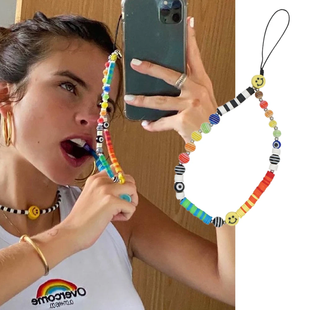 Богемный цветной ремешок для телефона, цветной ремешок с улыбкой, с...
