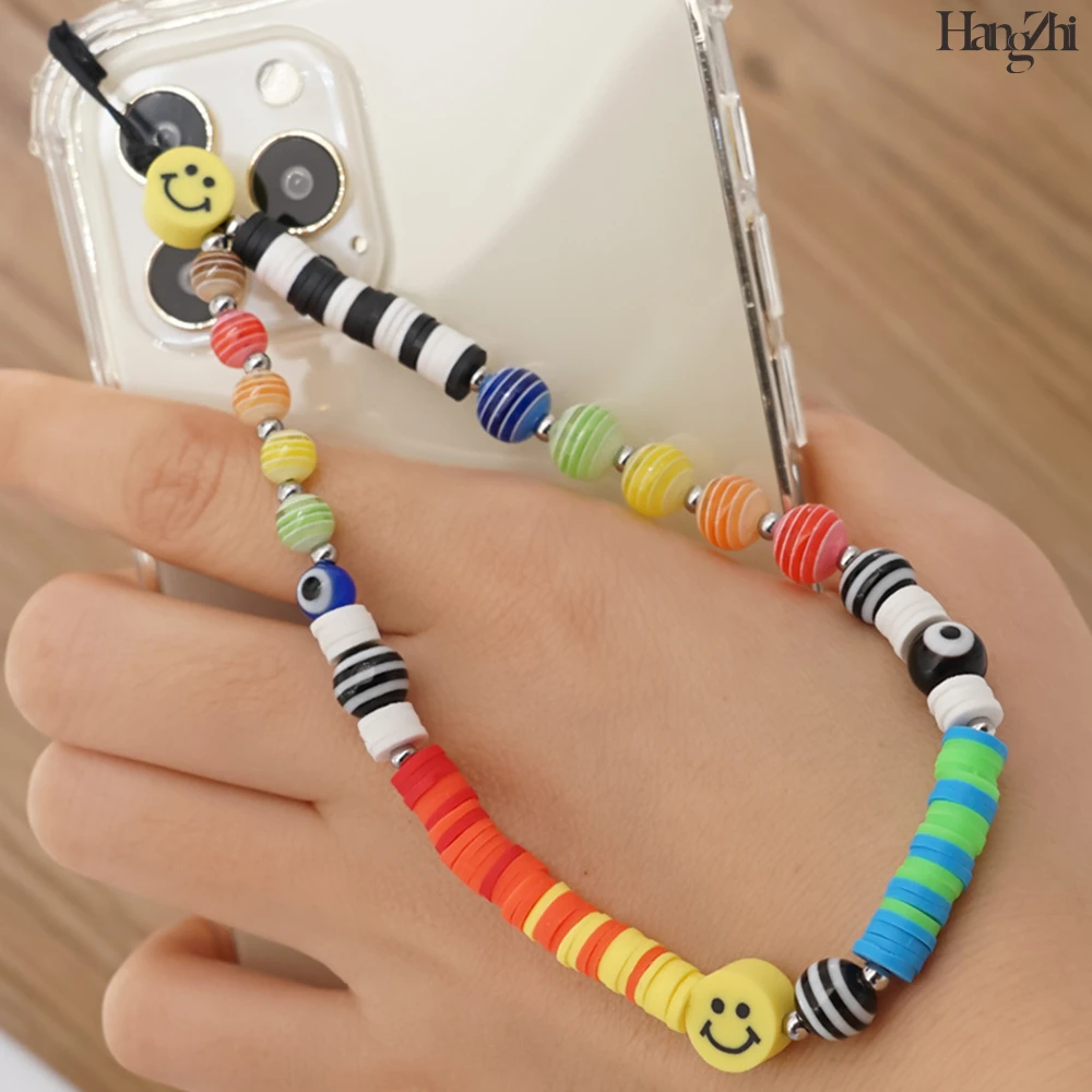 Новинка 2021, полимерные шарики HangZhi в стиле бохо с улыбающимся лицом, застекленные бусины от сглаза, мягкая керамика, цепочка для сотового телефона, брелок, шнурок