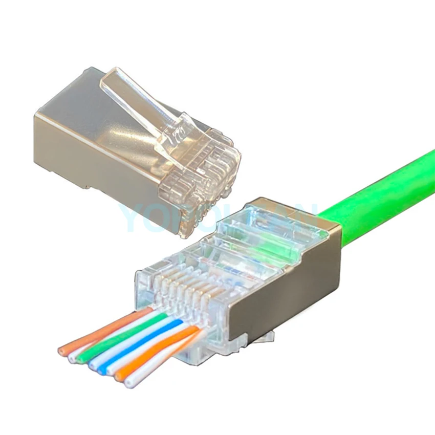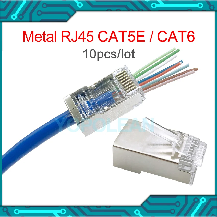 10 шт./лот, экранированный разъем RJ45 Cat 5e Cat 6, сетевой разъем RJ45