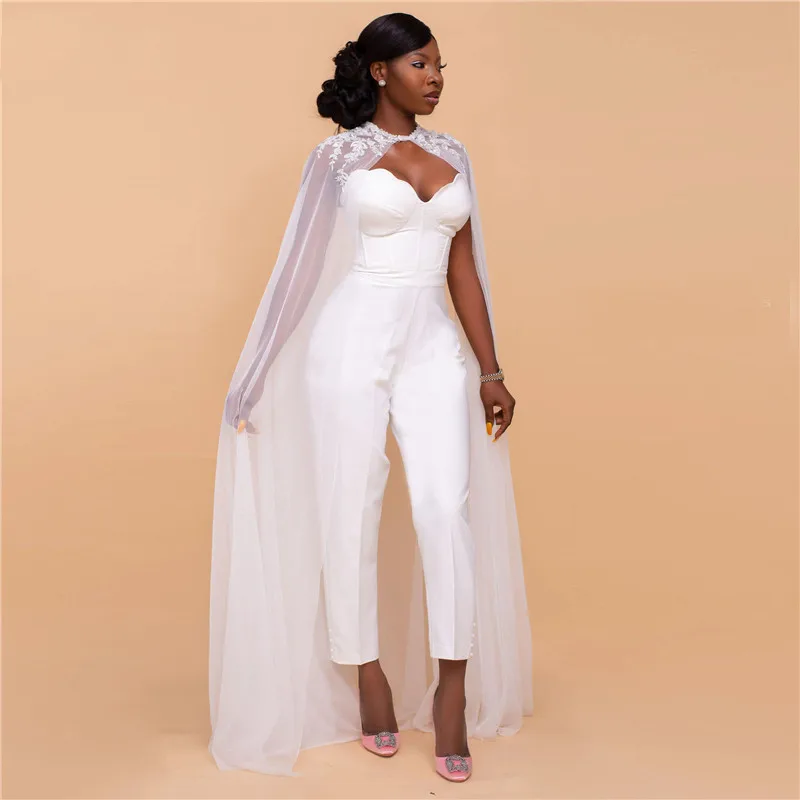 Африканские комбинезоны, свадебные платья 2021 с шалью, свадебные платья для милой невесты, женские брючные костюмы, свадебные платья на заказ