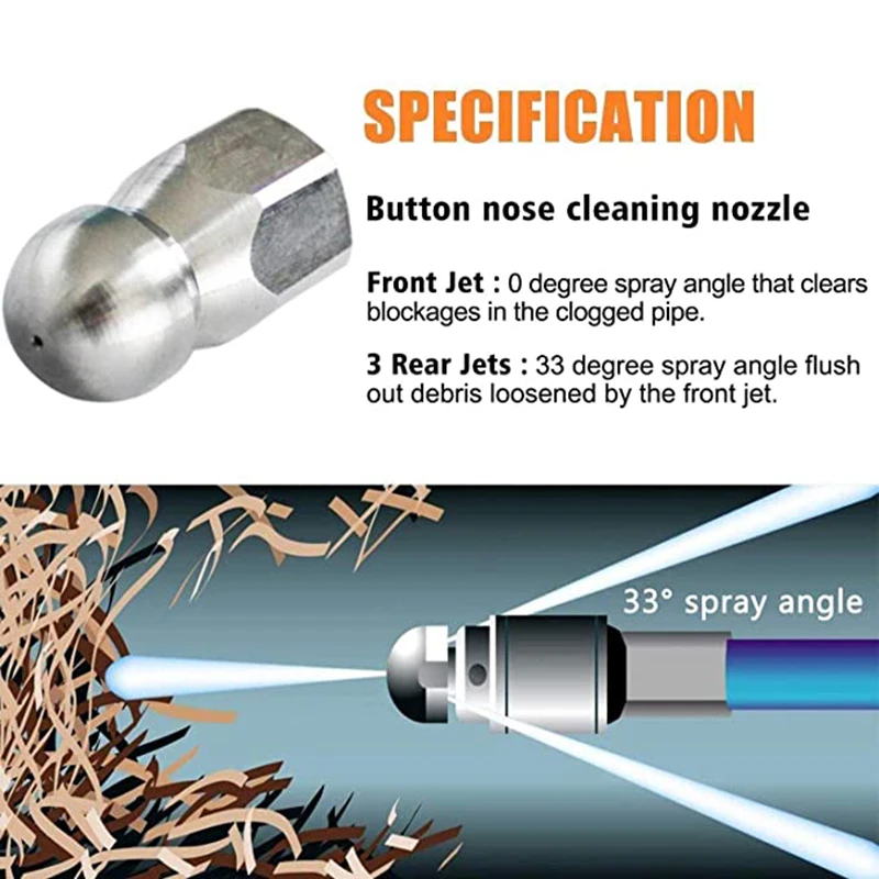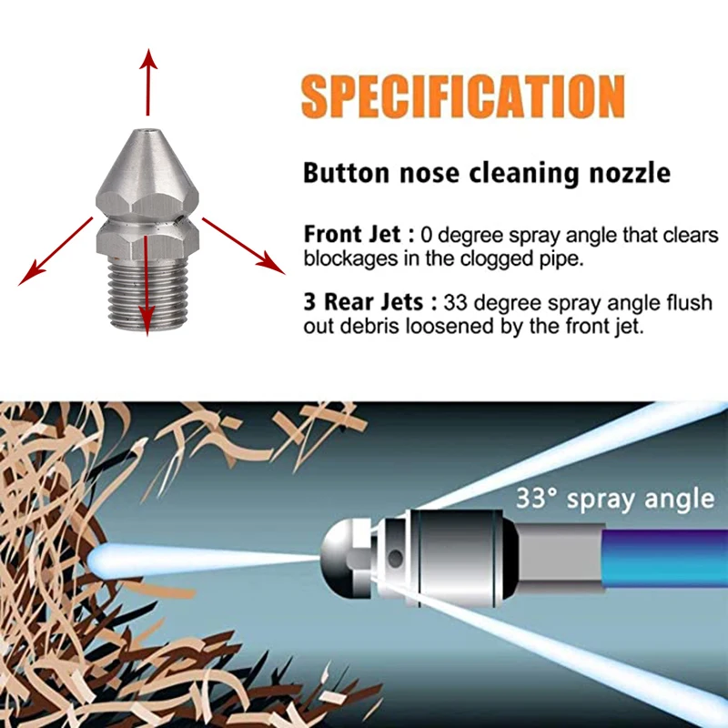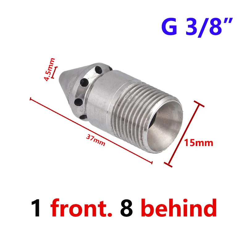【Широкое применение -- 3/8BSP сопло подходит для большого прицепа смонтированного оборудования, используемого для городских муниципальных применений и коммерческих процедур【 8 обратных отверстий подъездная дорога-разработан с 8 обратных отверстий привод сопла вперед и смыва мусора【 1 переднее отверстие -- 1 переднее отверстие идеально подходит для резки мусора и расколов упрямой грязи впереди