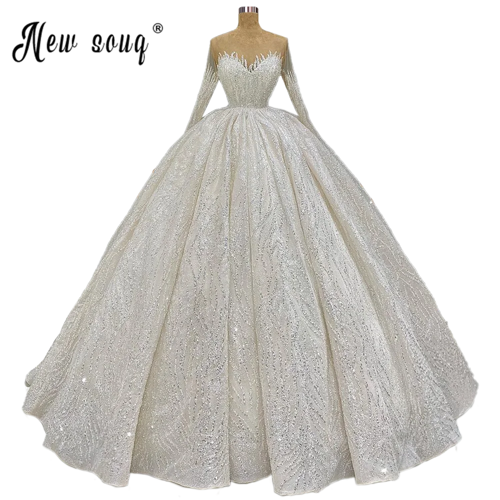 Милая одежда с длинными рукавами платье белого цвета и цвета слоновой кости свадебное платье трапециевидной формы Роскошные бисером аппликации свадебные платья для женщин Бальные платья Реальные фотографии
