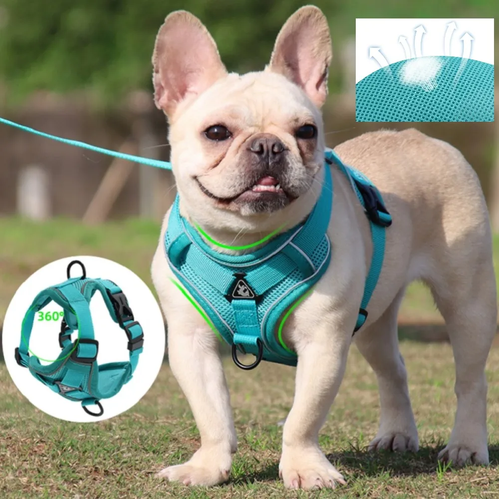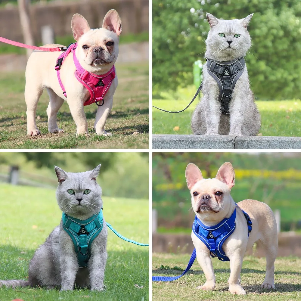 Комплект из шлейки и поводка для кошек и собак, ошейник для маленьких собак, регулируемый сетчатый жилет для щенков, французский стиль, светоотражающий, для бульдога чихуахуа