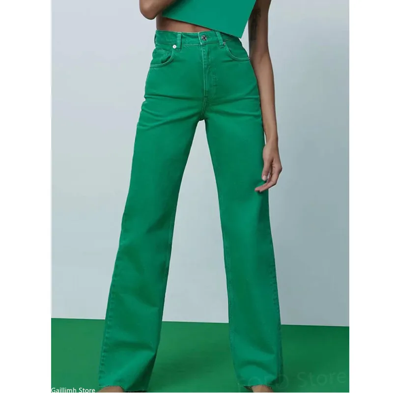 Женские джинсы с высокой талией, прямые тонкие джинсы ярко-желтого и ярко-зеленого цветов, весна-осень 2022