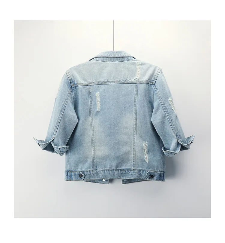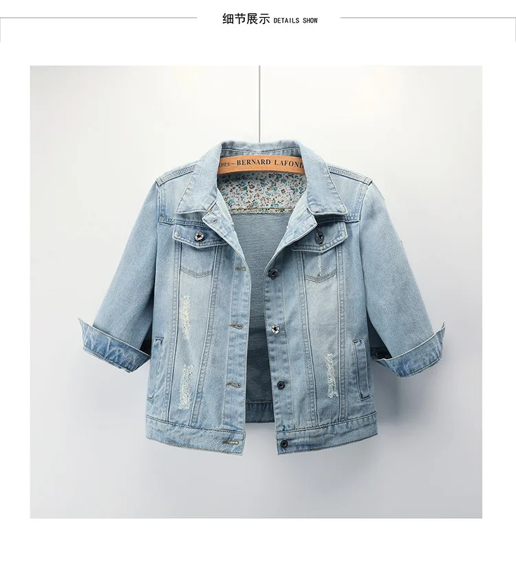 Женская рваная джинсовая куртка, джинсовая куртка большого размера с рукавом 34, весна-осень 2021