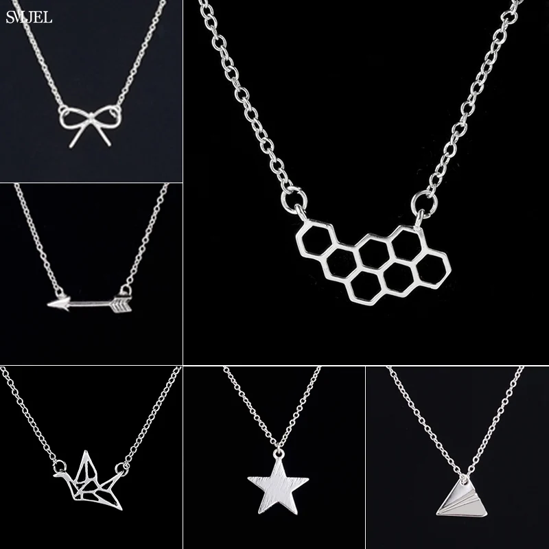 Минималистичная Мода ожерелье с бантиком для женщин полые соты треугольник звезда самолет стрела Чокер ожерелья Женские аксессуары