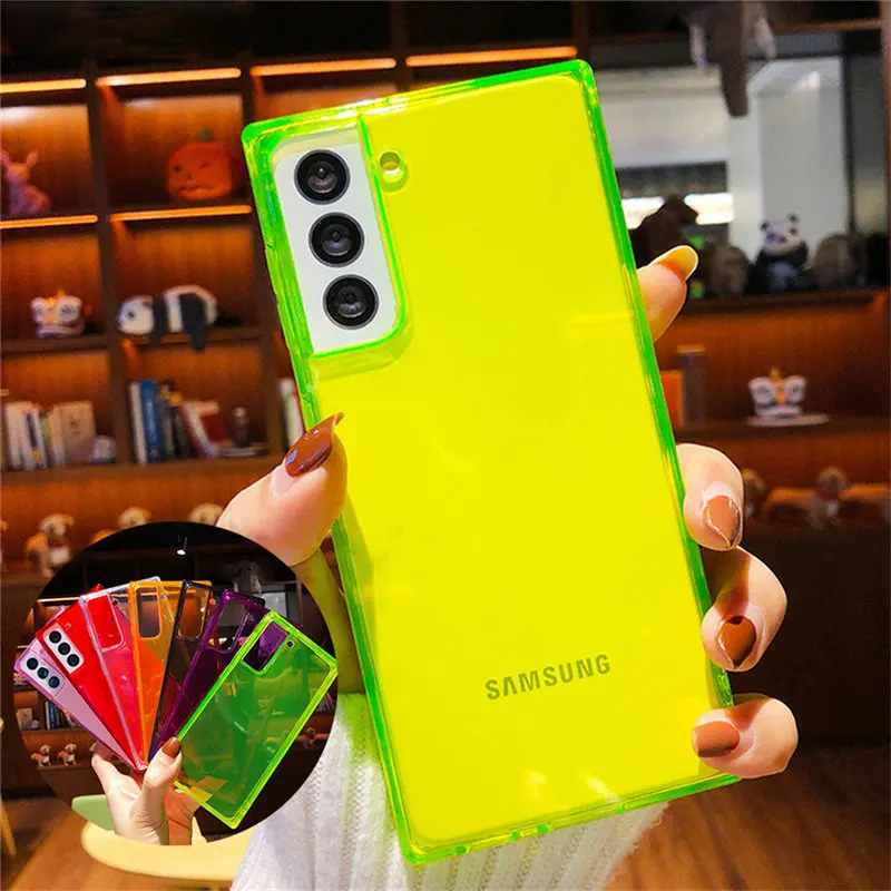 Квадратный неоновый цветной чехол для телефона Samsung Galaxy S21 S...